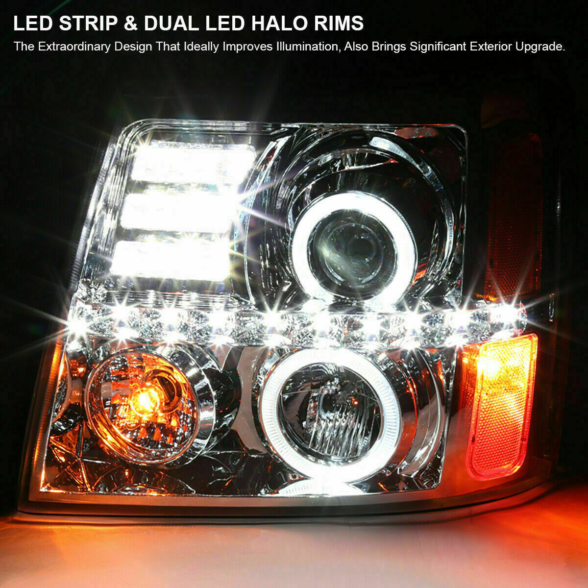 CHROME HALO PROJECTOR HEADLIGHT ASSEMBLIES + LOW BEAM LED BULBS