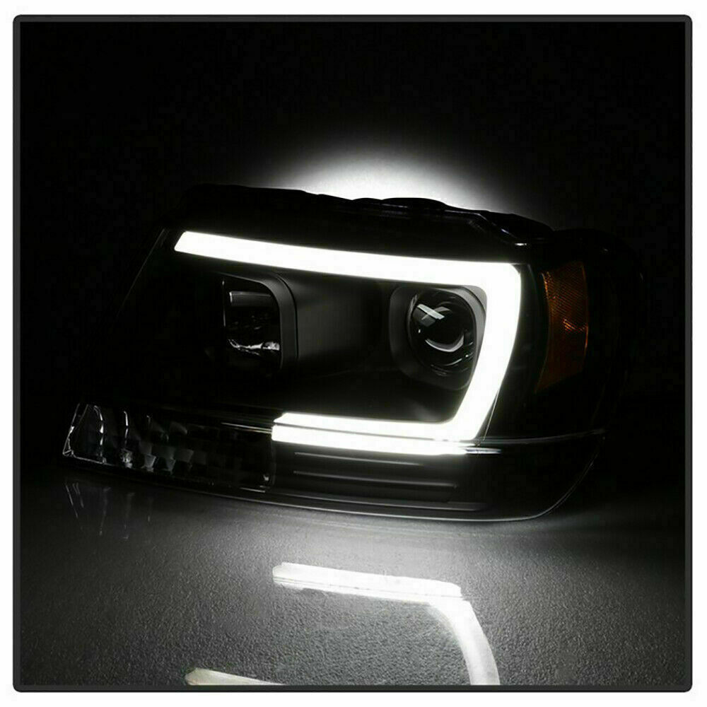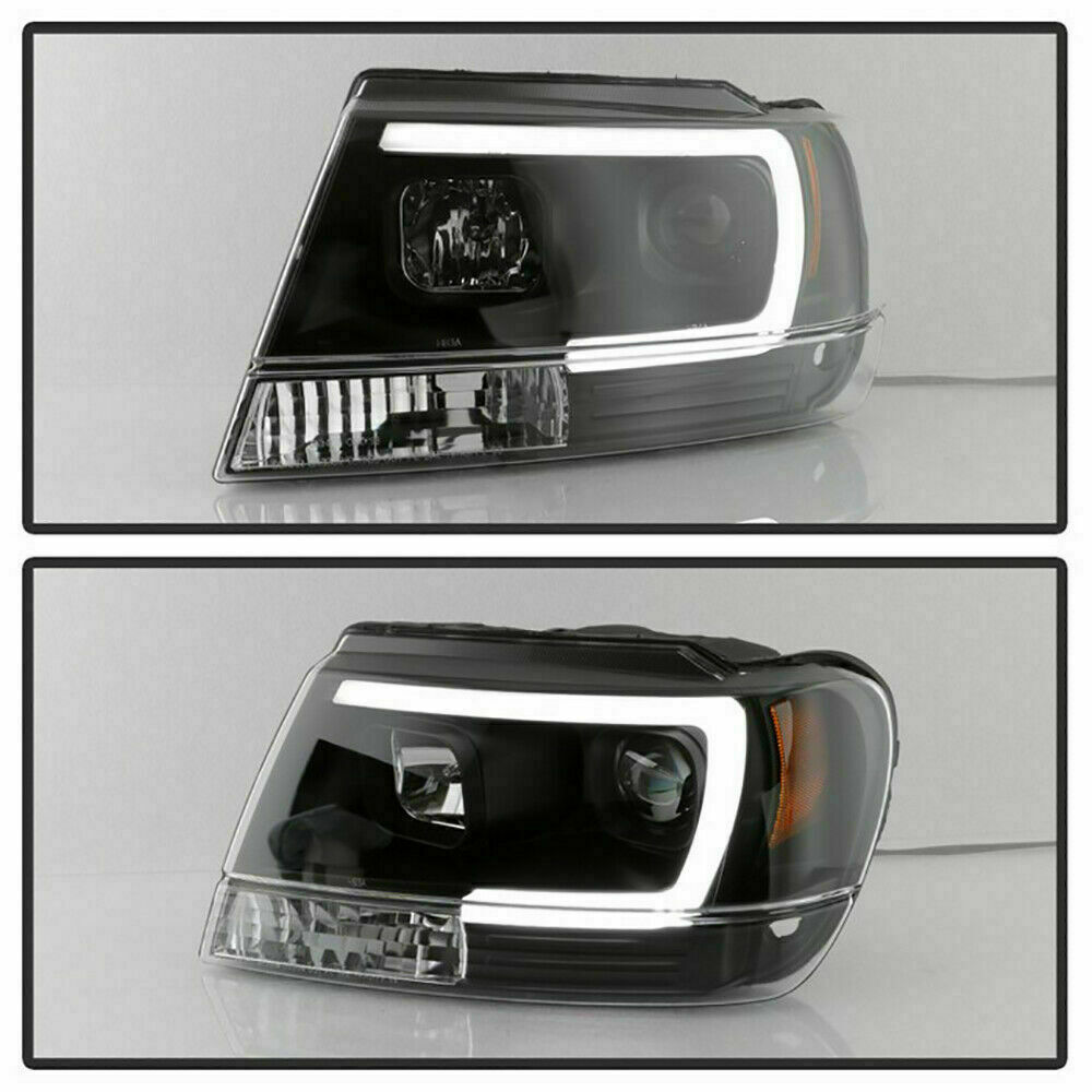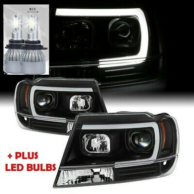 BLACK PROJECTOR HEADLIGHT ASSEMBLIES + LOW BEAM LED BULBS