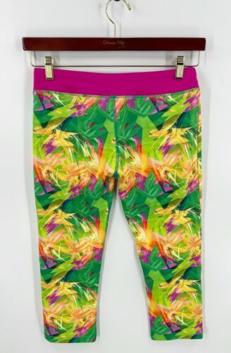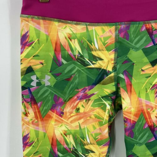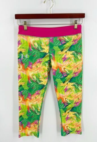 Under Armour Girls Youth Sz XL Pink Green Athletic Workout Leggings Cropped NEW