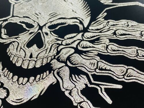 Break Out Skeleton Skull Car Tag Engraved Gloss Black Etched License Plate