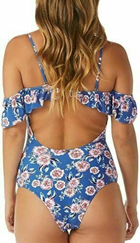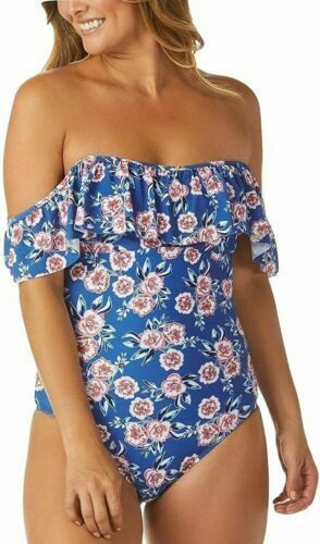 New $78 Raisins Maui One Piece Swimsuit Off the Shoulder Blue Multi-floral XL