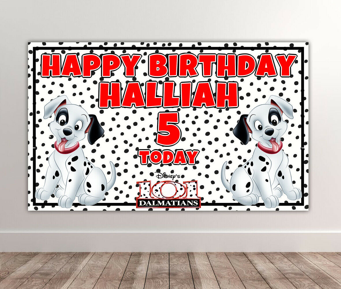 2 X 101 DALMATIANS Personalised Birthday Backdrop - Disney Banner 40x24 Inches