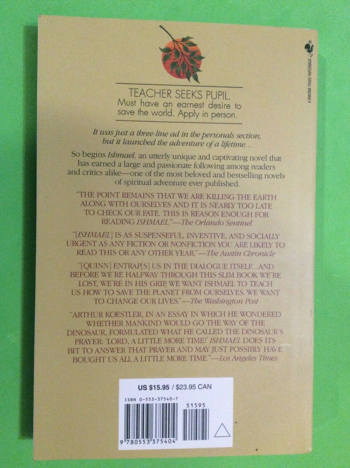 ISHMAEL by DANIEL QUINN - SOFTCOVER - A NOVEL