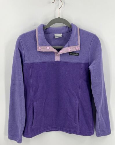 Columbia Girls Fleece Jacket Size L (14/16) Lavender Purple Pullover Snap Neck