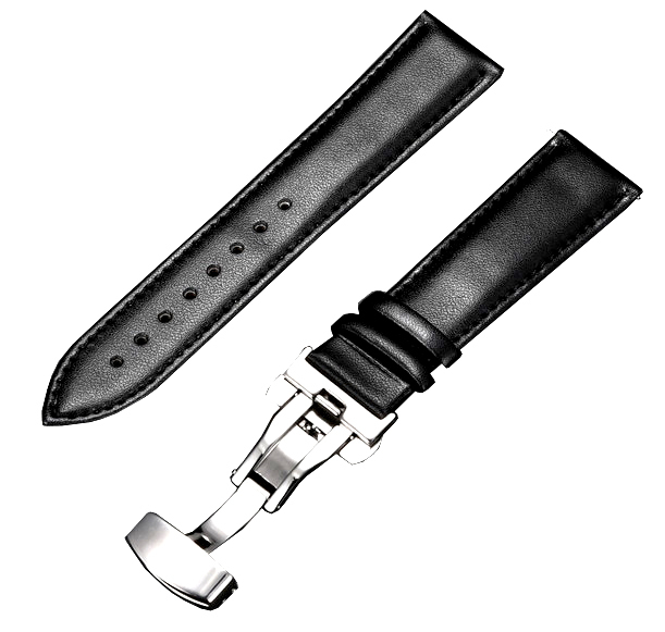 20mm Genuine Leather Watch Band Strap Fits CAPELAND CHRONOGRAPH Black Deployment Silver Buckle