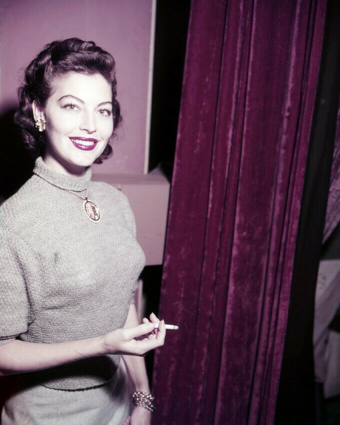 Ava Gardner Rare Color Holding Cigarette 1940's 8x10 Photo (20x25 cm approx)