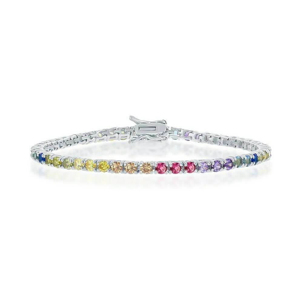 Sterling Silver 3mm Round Multicolor CZ Teen Bridal Tennis Bracelet