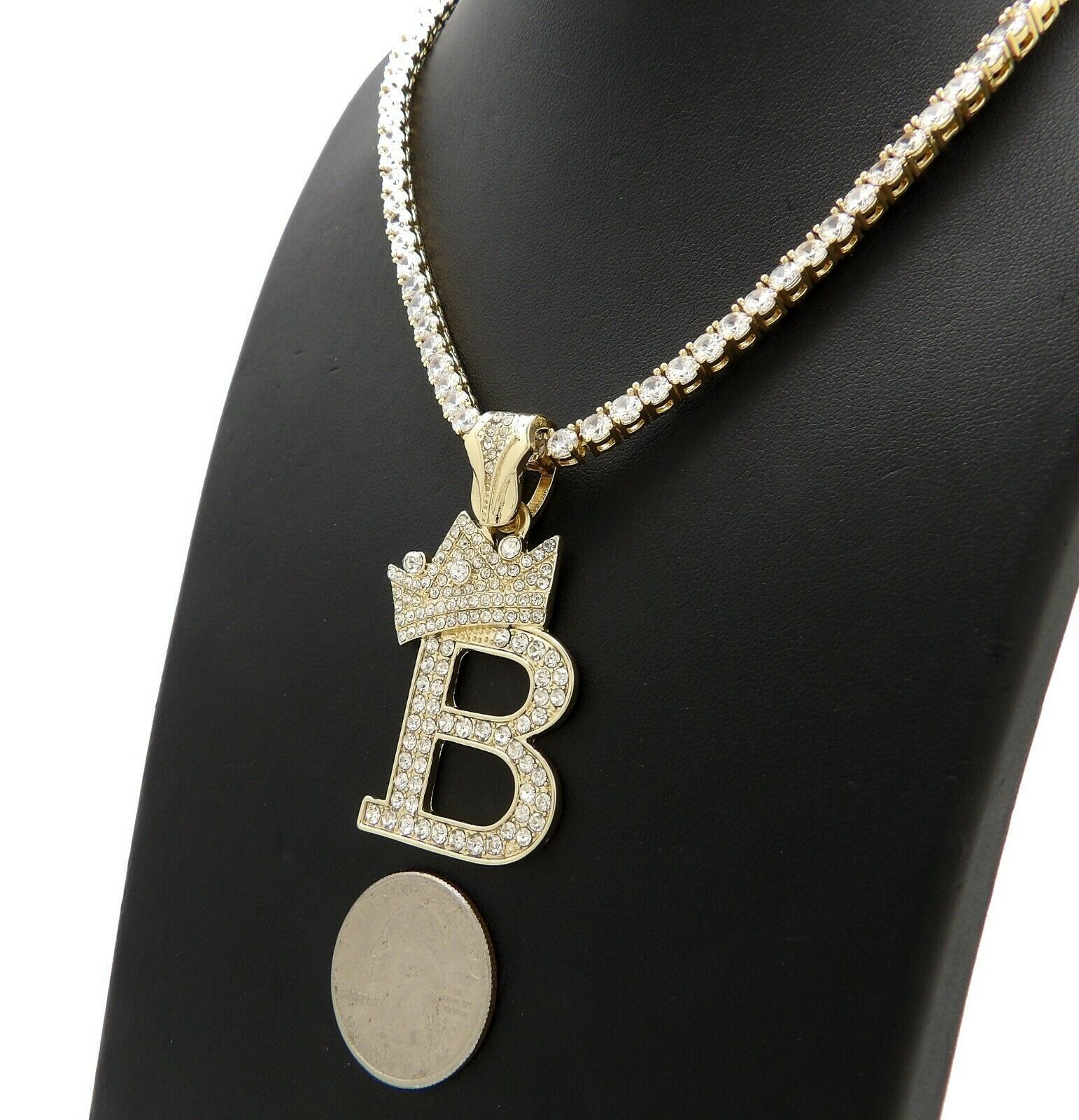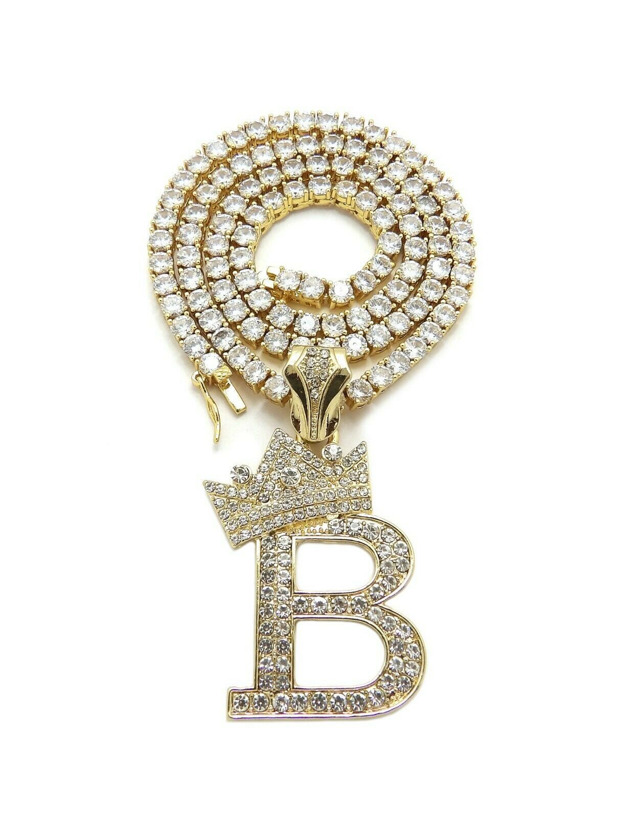 Our most sold and famous jewelry urban chain necklace accessory! Talking about initial letters pendants necklaces with an added royal touch, a crown for kings and queens; a unique fashionable pendant style that you will only see in iJewelry2 necklaces. This gold-tone brass chain necklace features a well-designed initial letter with a crown on one of the letter's top corners giving this pendant be unique among other similar pendant necklaces. With accented sparkling clear rhinestones in the whole initial letter pendant shape, the initial letter pendant measures 1.25'' x 2.25'' with a 4 mm tennis chain style filled out with radiant clear cubic zirconias that will look fine in your urban daily outfit. You can choose between two different chain lengths 18'' and 20''.
