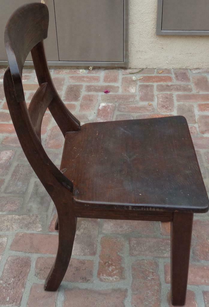 Offered here is this Vintage Solid Wood Side Chair. I am unsure of the age or origins of the chair. It is in very good condition, with some light surface scratches on it in a few spots, but overall, it is in great condition. It is made of solid wood, and is finished in a very dark stain, with a glossy urethane topcoat. The back support of the chair has a slight outward curve, which makes it quite comfortable to sit in. It would be a great dining, accent, or desk chair. It is 35? tall at the back, 18? high at the seat, 18? wide across the front of the seat, 15? wide at the back of the seat, 16? deep at the seat, and 19? deep total. It is a very nice solid wood, sturdy side chair that will go with virtually any room or decor.