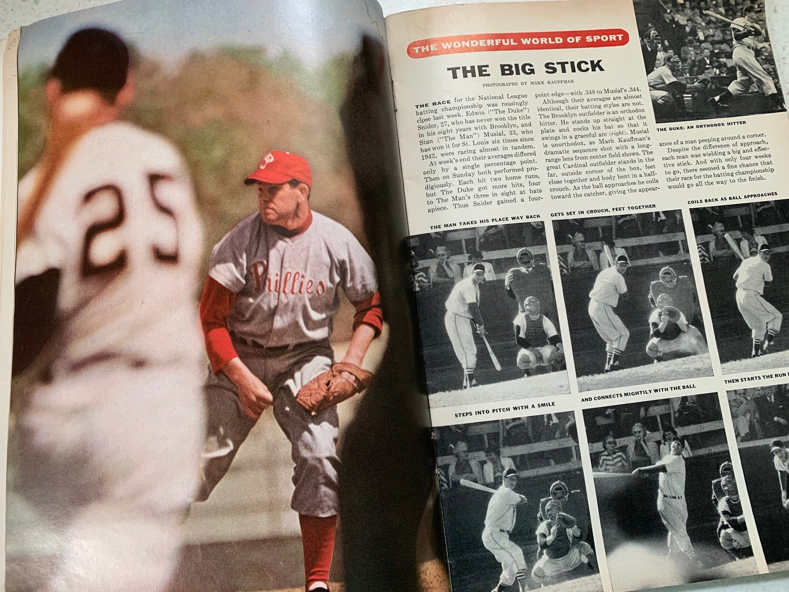 SPORTS ILLLUSTRATED September 6, 1954 - Fourth weekly issue - no mailing label. Cover photo: Yacht Racing on Long Island Sound. Articles include: "The Kansas Cyclone" about then President Eisenhower's love of sport. "Battle for the Amateur" featuring young "rookie" golfer Arnold Palmer. Phillies pitcher and HOFer Robin Roberts (with color photos), Duke Snider vs. Stan Musial in the race for the batting championship. Popular dogs: The Poodle, Cleveland Indians manager Al Lopez.