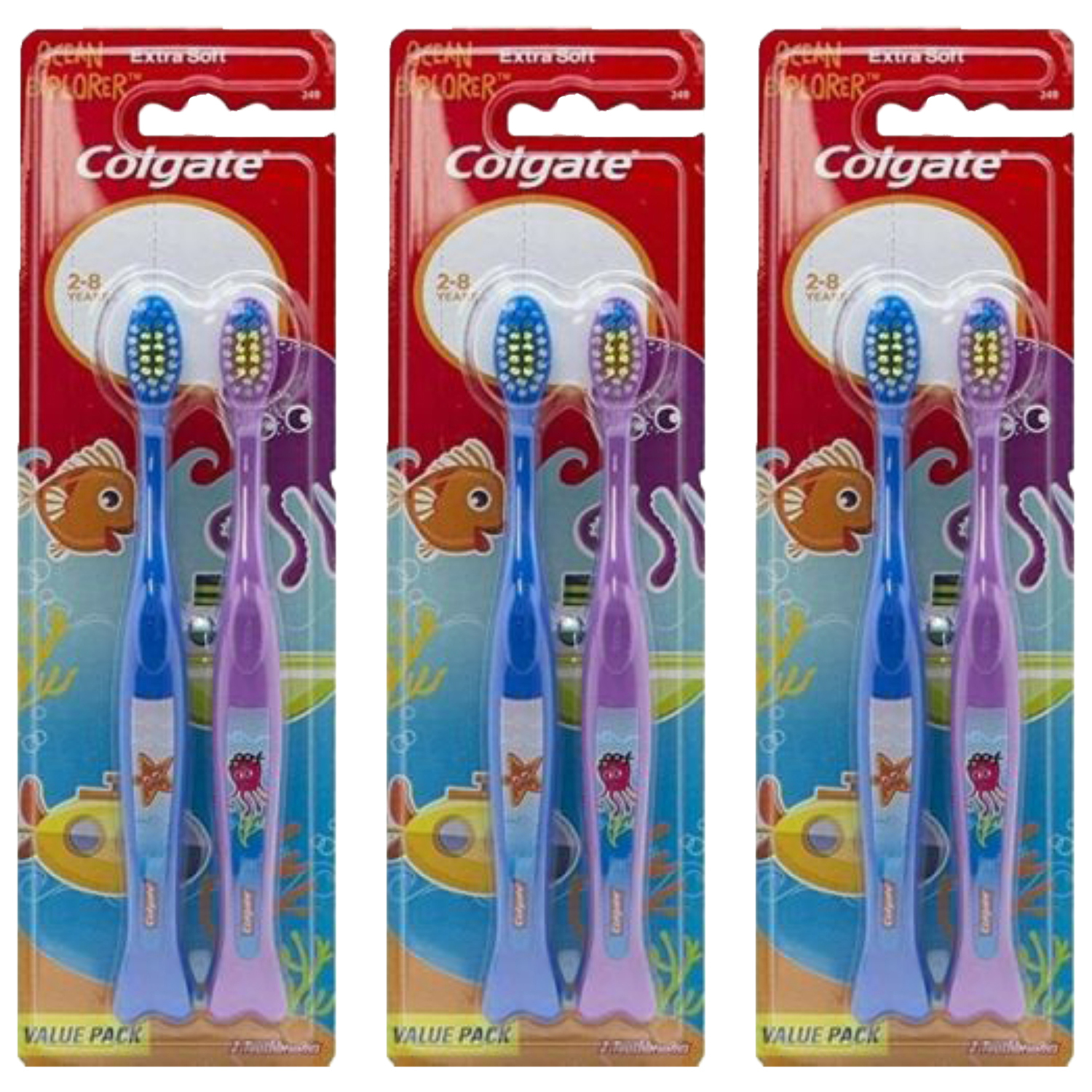 Pack of (3) New Colgate Ocean Explorer Extra Soft Kids Toothbrush, 2 Count