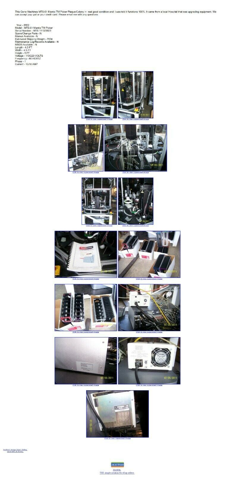 This Gene Machines MTS-01 Mantis TM Picker Plaque/Colony is in used condition and was removed from a working environment. Please note that photos in listing were transferred from our smaller store that we are closing down due to lack of traffic/visibility. The majority of these photos were located in the description and as a result cannot be transferred. Please see screenshot of the description page from the original listing. We will be happy to provide additional information as well as new photos so please feel free to contact us with any questions.