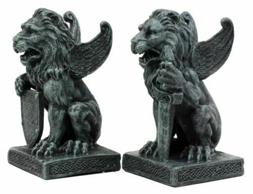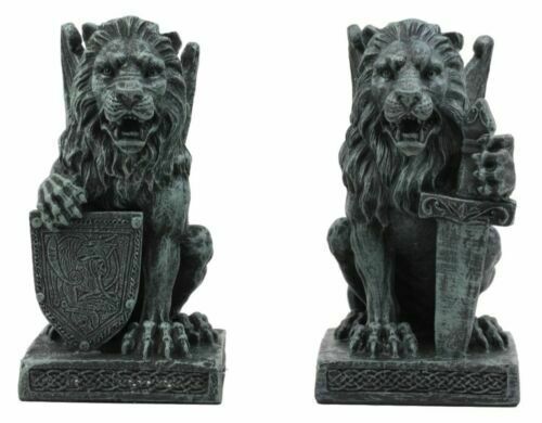โข If you love gargoyles and gothic decors, this figurine will suit you perfectly. This Lion Guardian will keep the evil spirits away from your home! Sold as a set, the sword lion works to defeat the evil forces while the shield lion protects you from the attacks of the evil spirits.