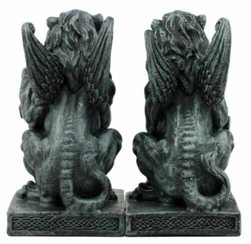 โข This Notre Dame Lion Heart Gargoyle figurine set measures approximately 6" tall, 3.25" long and 3" deep each. (inches)