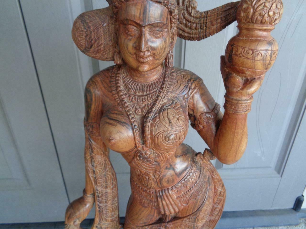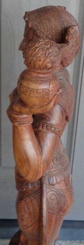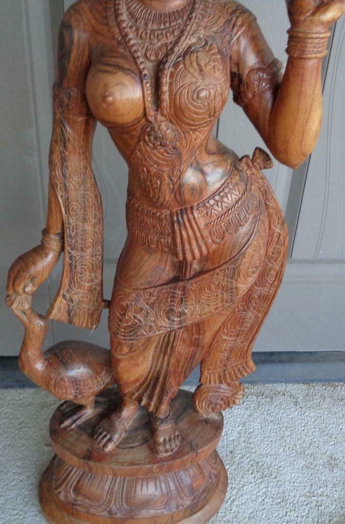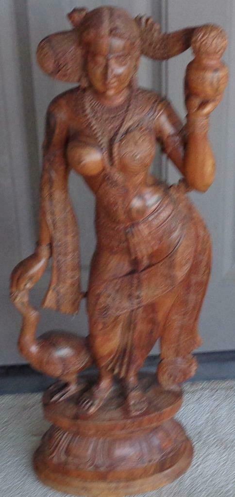 Beautiful Hand Carved Solid Wood Statue – Woman in India–AMAZING GORGEOUS DETAIL