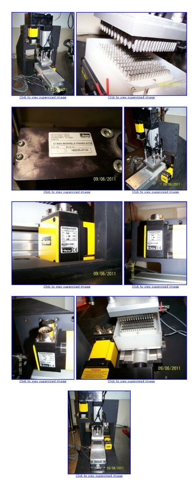 This Parker Compumotor Automation Robotics 96-Channel Pipettor Base Plate ETB50 is in used condition and was removed from a working environment. Please note that photos in listing were transferred from our smaller store that we are closing down due to lack of traffic/visibility. The majority of these photos were located in the description and as a result cannot be transferred. Please see screenshot of the description page from the original listing. We will be happy to provide additional information as well as new photos so please feel free to contact us with any questions.