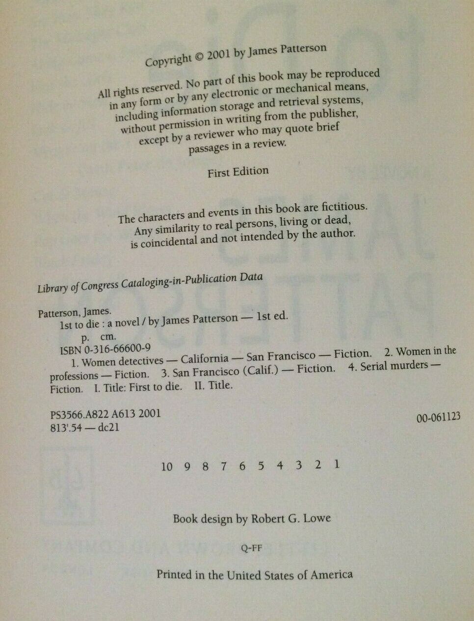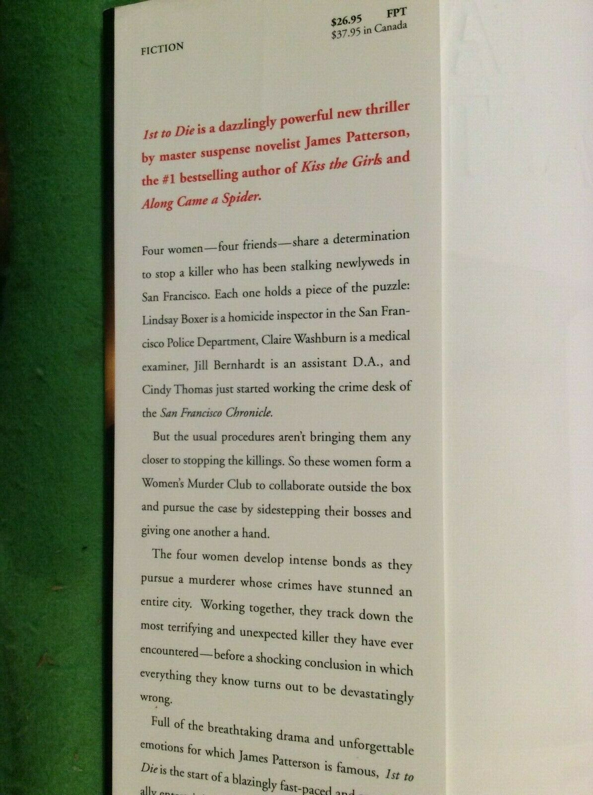 1st TO DIE by JAMES PATTERSON - HARDCOVER - FIRST EDITION - WOMEN'S MURDER CLUB