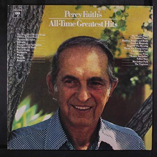 Product description: 2 VINYL LP SET! Percy Faith: All-Time Greatest Hits! ! 1972 Columbia Compilation! The stereo arrangement of "Show Me" included on this compilation has not been reissued, to date, on any Compact Disc. TRACKS: A1. Baubles, Bangles and Beads; A2. Swedish Rhapsody (Midsummer Vigil); A3. Angel of the Mornin; A4. Show Me; A5. Theme from "A Summer Place"; B1. Delicado; B2. Younger Than Springtime; B3. Malagueรฑa; B4. Windy; B5. The Virginian; C1. The Song from Moulin Rouge (Where Is Your Heart?); C2. Theme for Young Lovers; C3. Bouquet; C4. Mexican Hat Dance; C5. Tara's Theme; D1. I Will Follow You; D2. The Sound of Music; D3. Love Theme [From Romeo and Juliet]; D4. Yellow Days; D5. MacArthur Park.