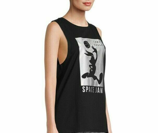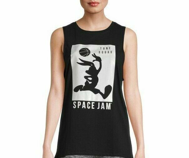 Space Jam Bugs Bunny Juniors' 'Tune Squad' Metallic Print Tank Top Black XXL/2XG(19)