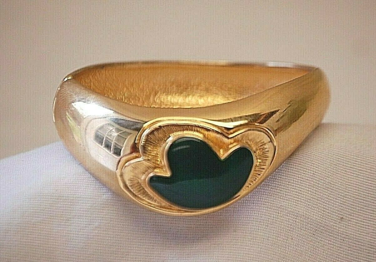Hinged Cuff Bangle Bracelet Gold Tone Green and similar items