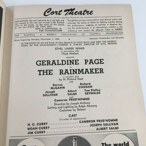 1954 Playbill Cort Theatre Geraldine Page in The Rainmaker by N. Richard Nash