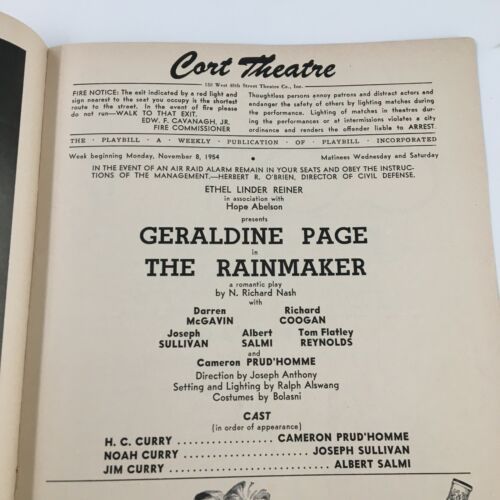 1954 Playbill Corth Theatre Geraldine Page in The Rainmaker by N. Richard Nash