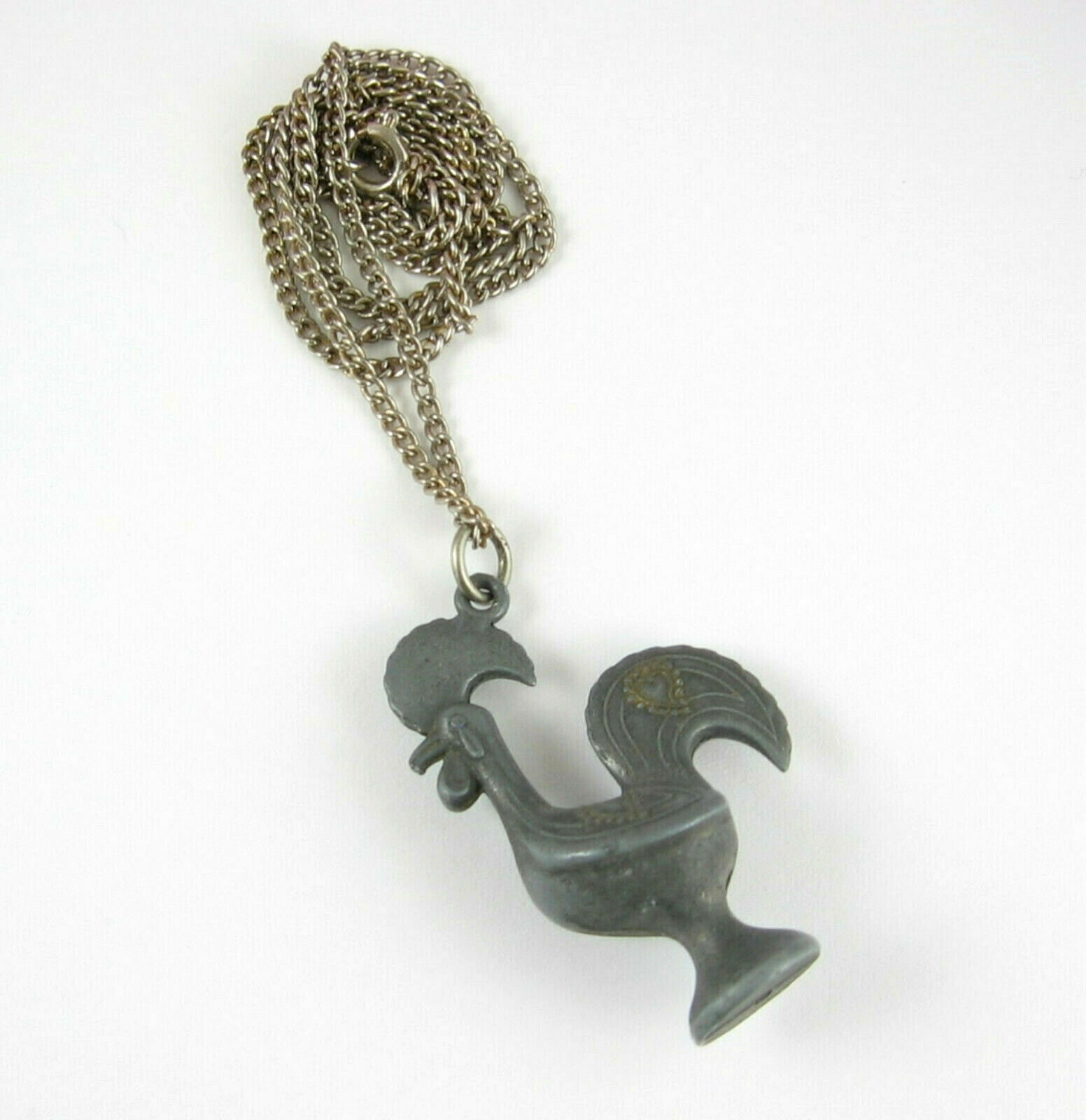 This is a vintage Silvertone Cast Metal ROOSTER PENDANT NECKLACE!!
