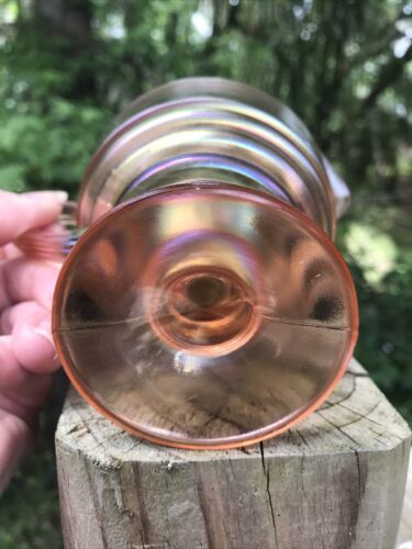 Vintage Dugan? Ribbed Carnival Glass Peach Opalescent Creamer Pedestal 2 seams
