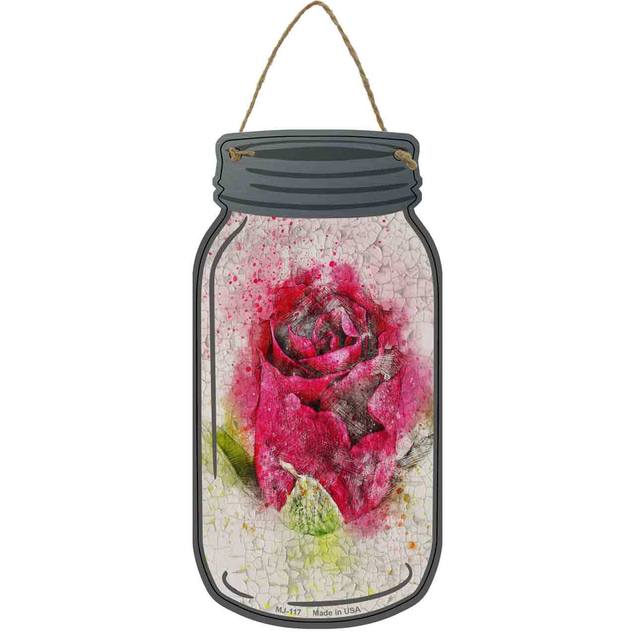 Pink Rose Watercolor Novelty Metal Mason Jar Sign