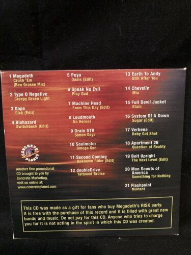 MEGADETH EXTRA VALUE CD SAMPLER (MEGADETH): CRUSH 'EM (BEN GROSSE MIX) PROMO CD.