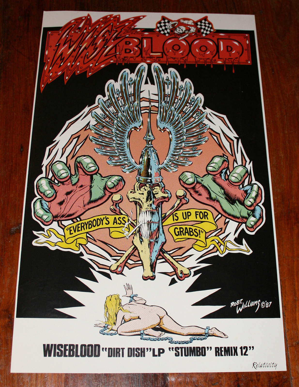 Wiseblood - Dirt Dish (11.5"x19" poster, US promo) 1987 Relativity condition: VG++ (Clint Ruin (a.k.a. J. G. Thirlwell), art by Robert Williams)
