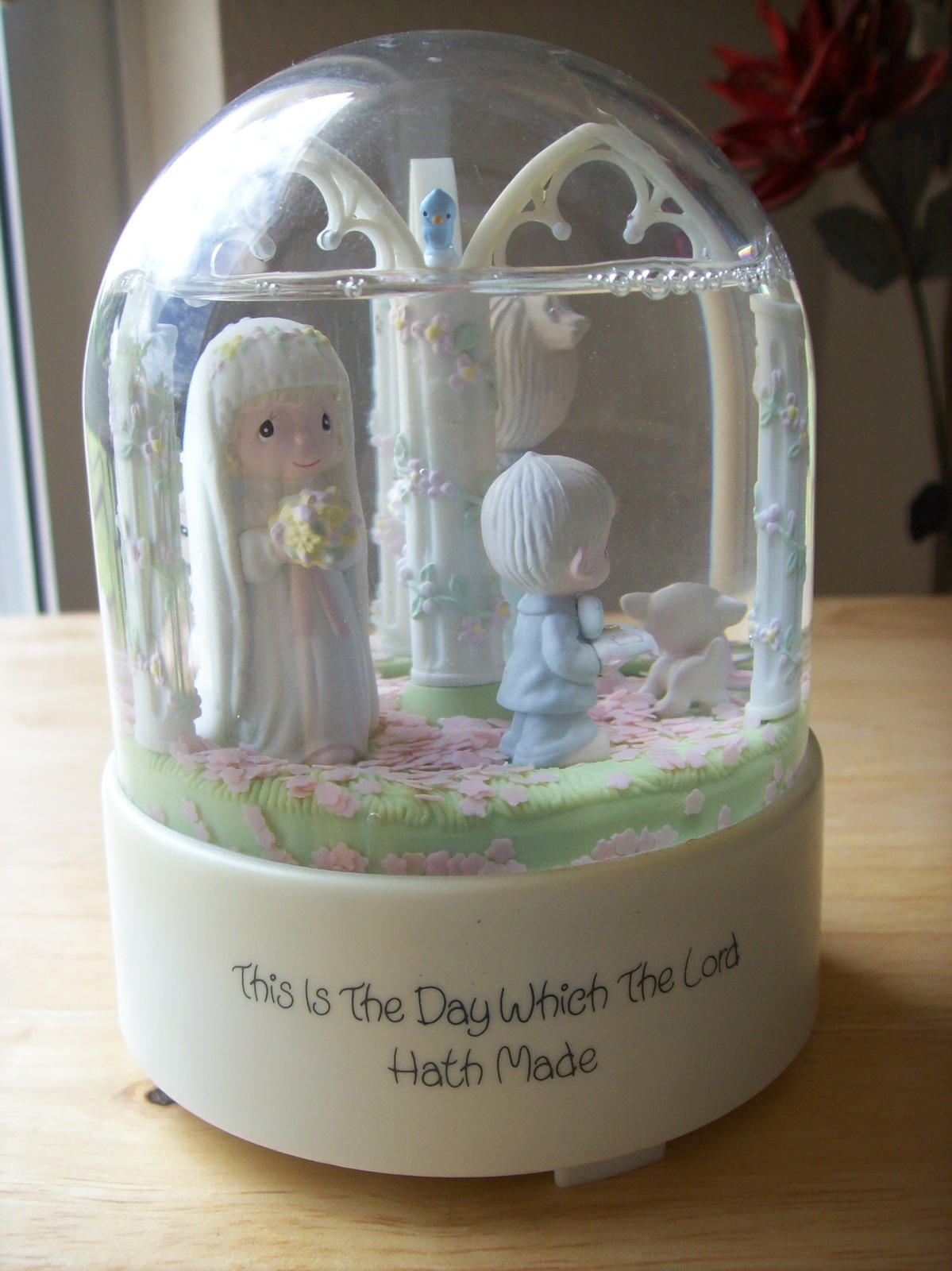 1985 Precious Moments Musical Animated Wedding Snow globe
