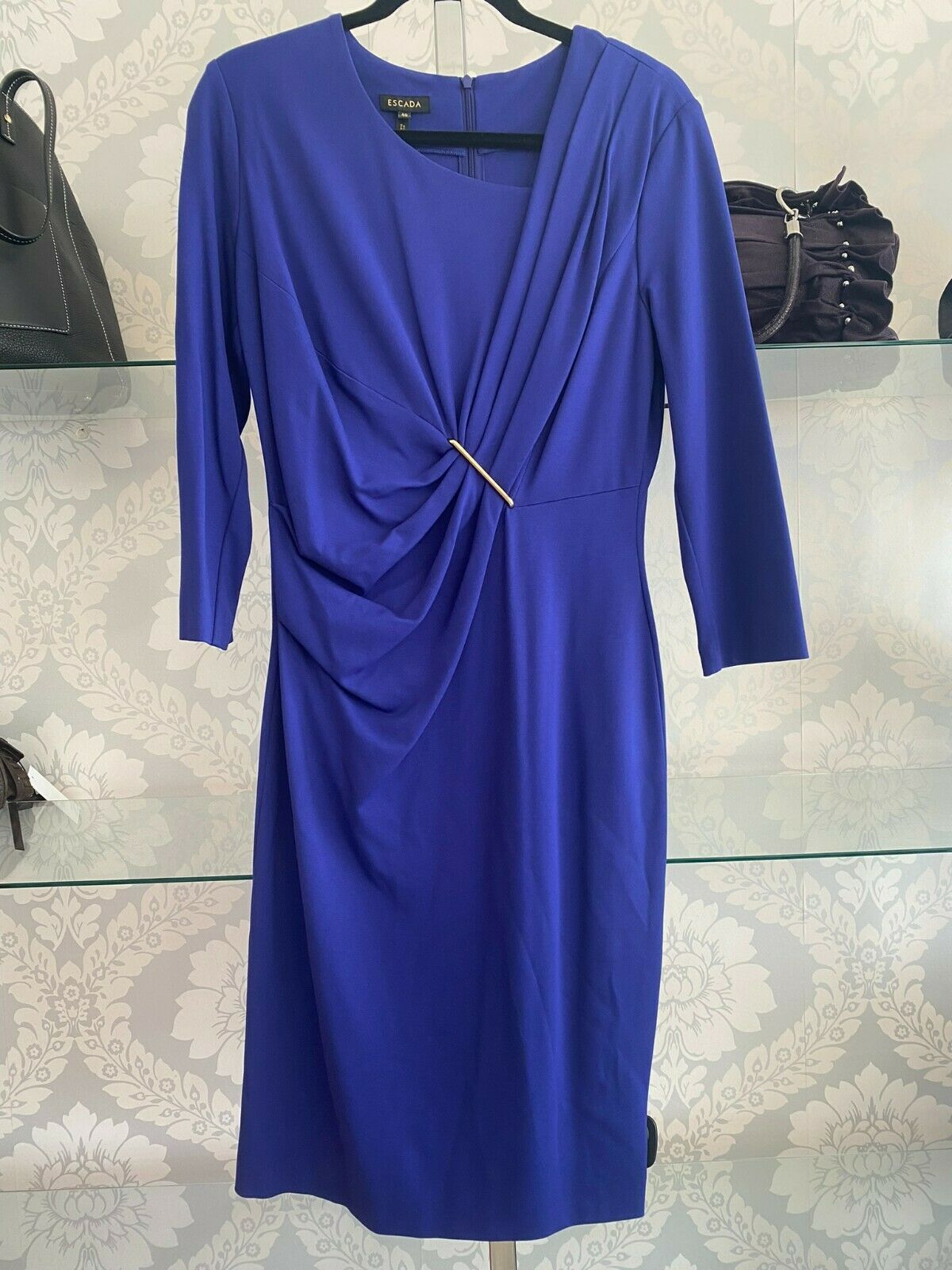 ESCADA Blue Gathered Front 3/4 Sleeve Sheath Dress Sz 40/US 10 $1295