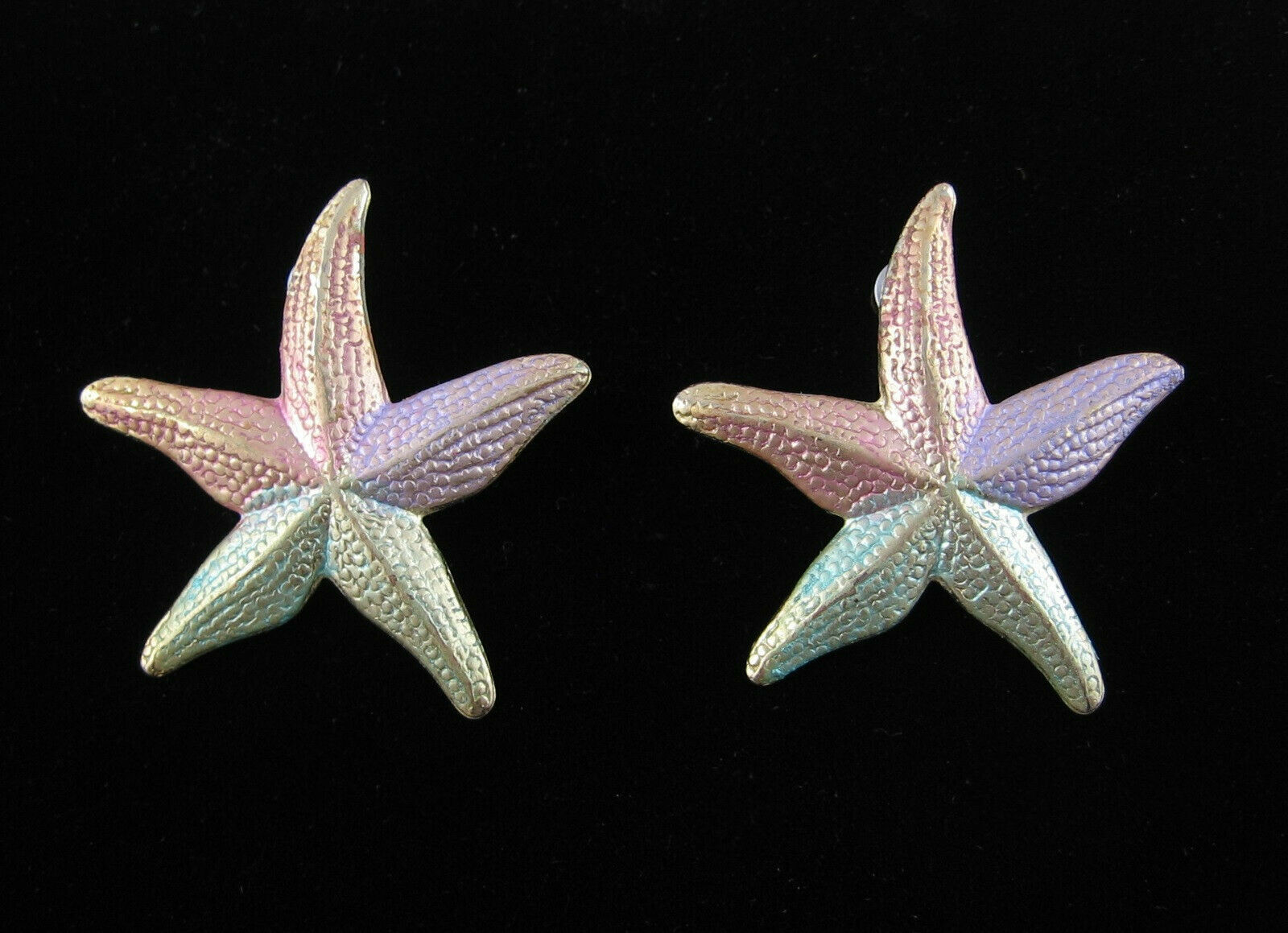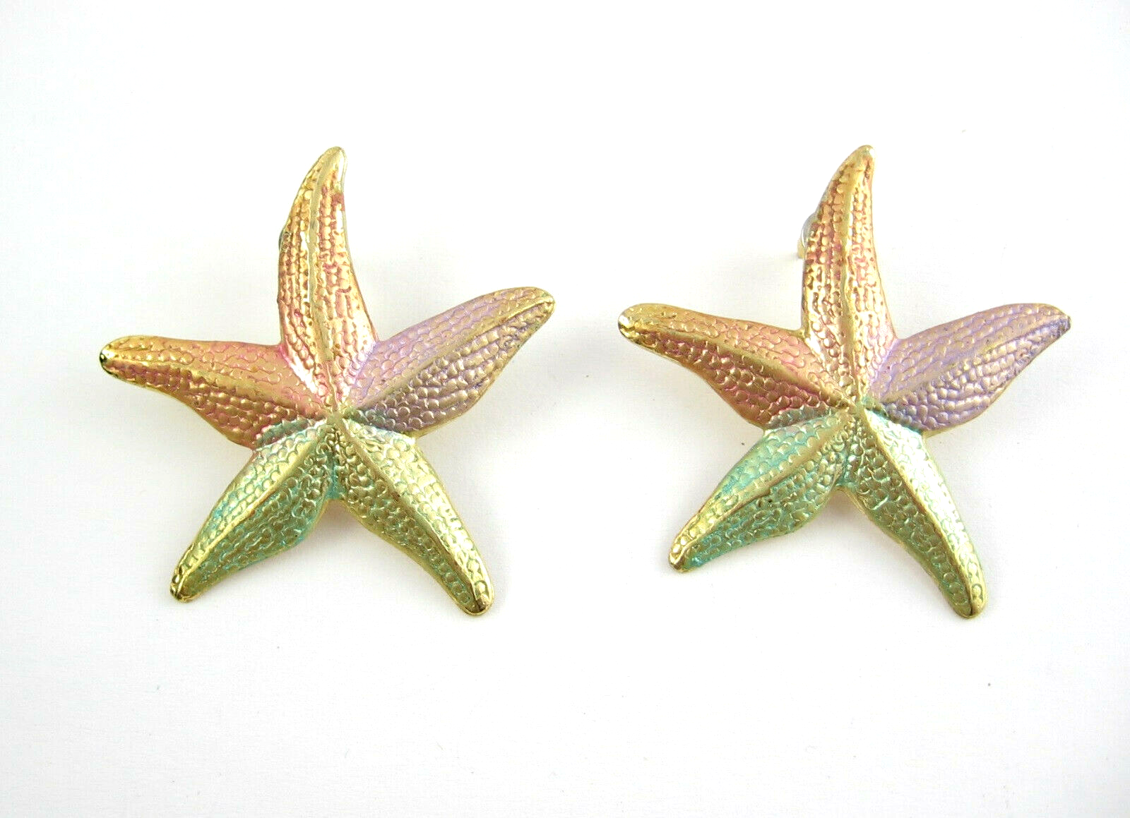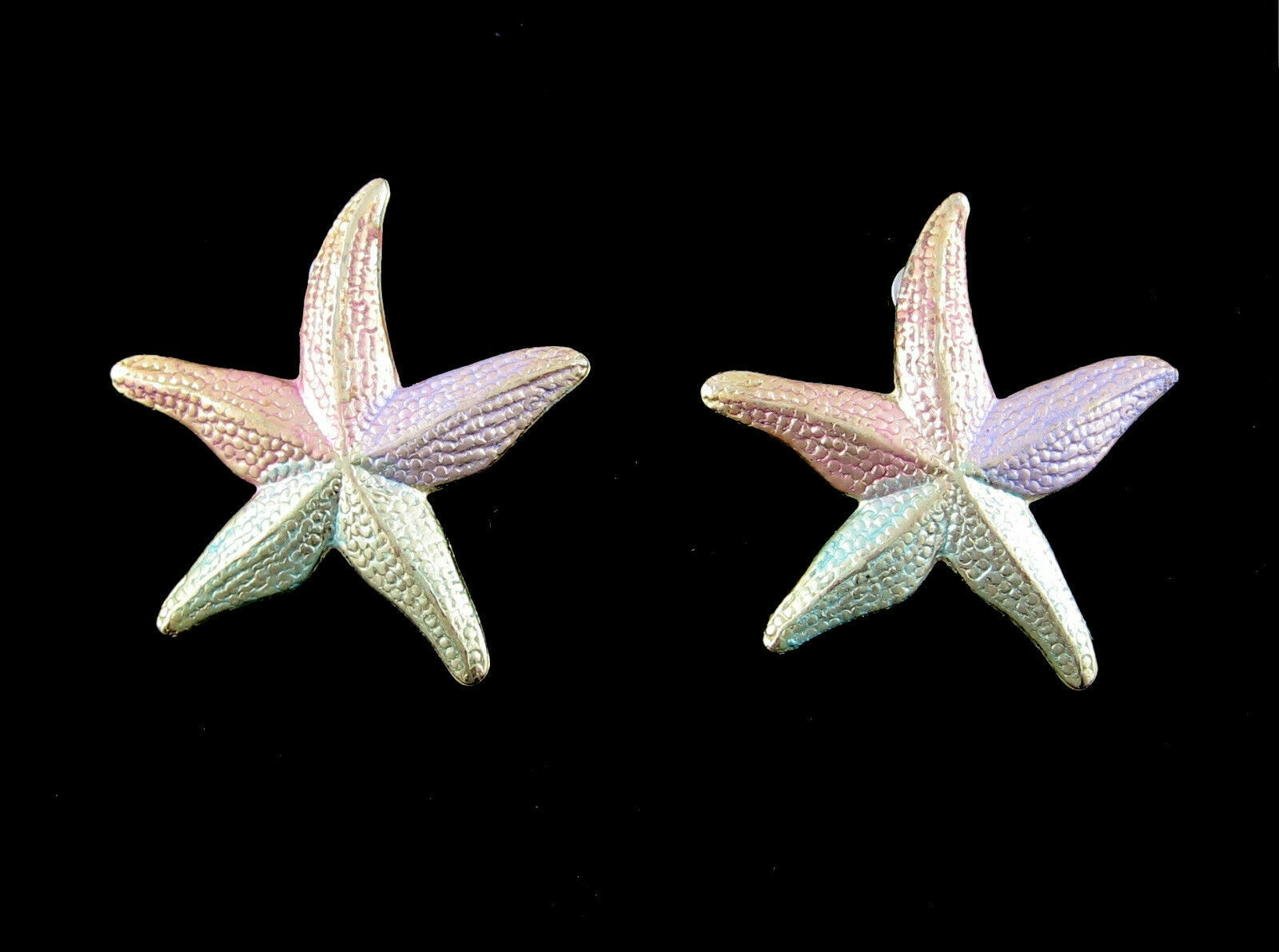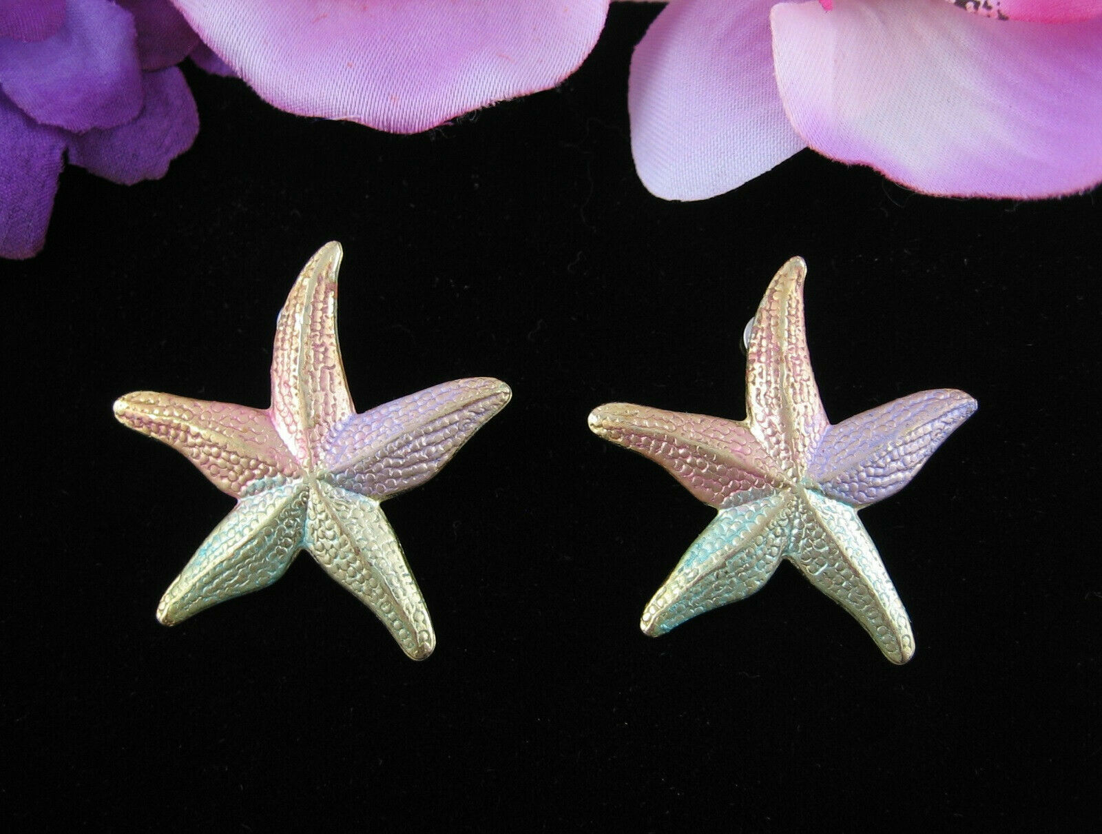 Pastel STARFISH Pierced EARRINGS Vintage Goldtone Posts Big Star Fish Colors