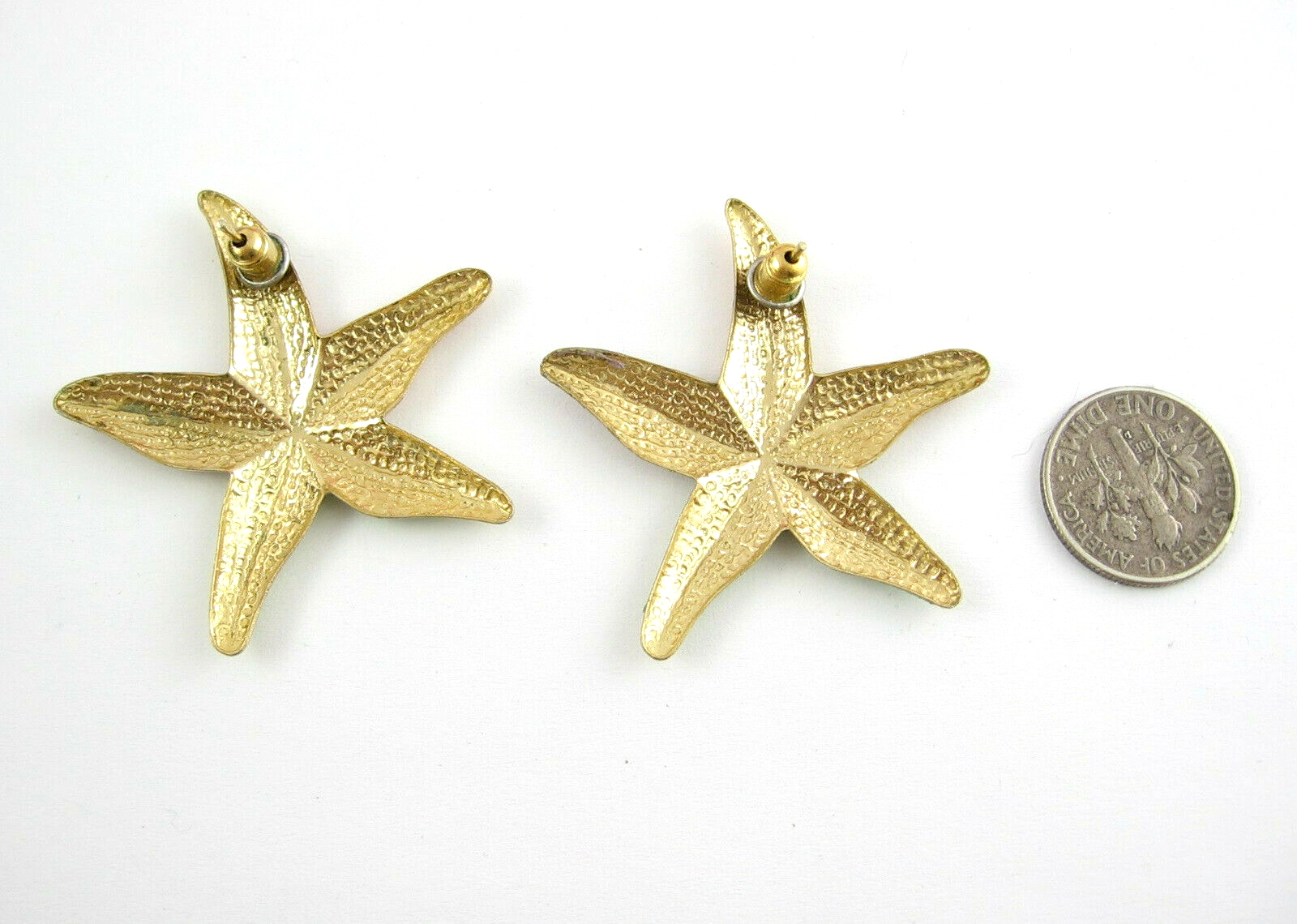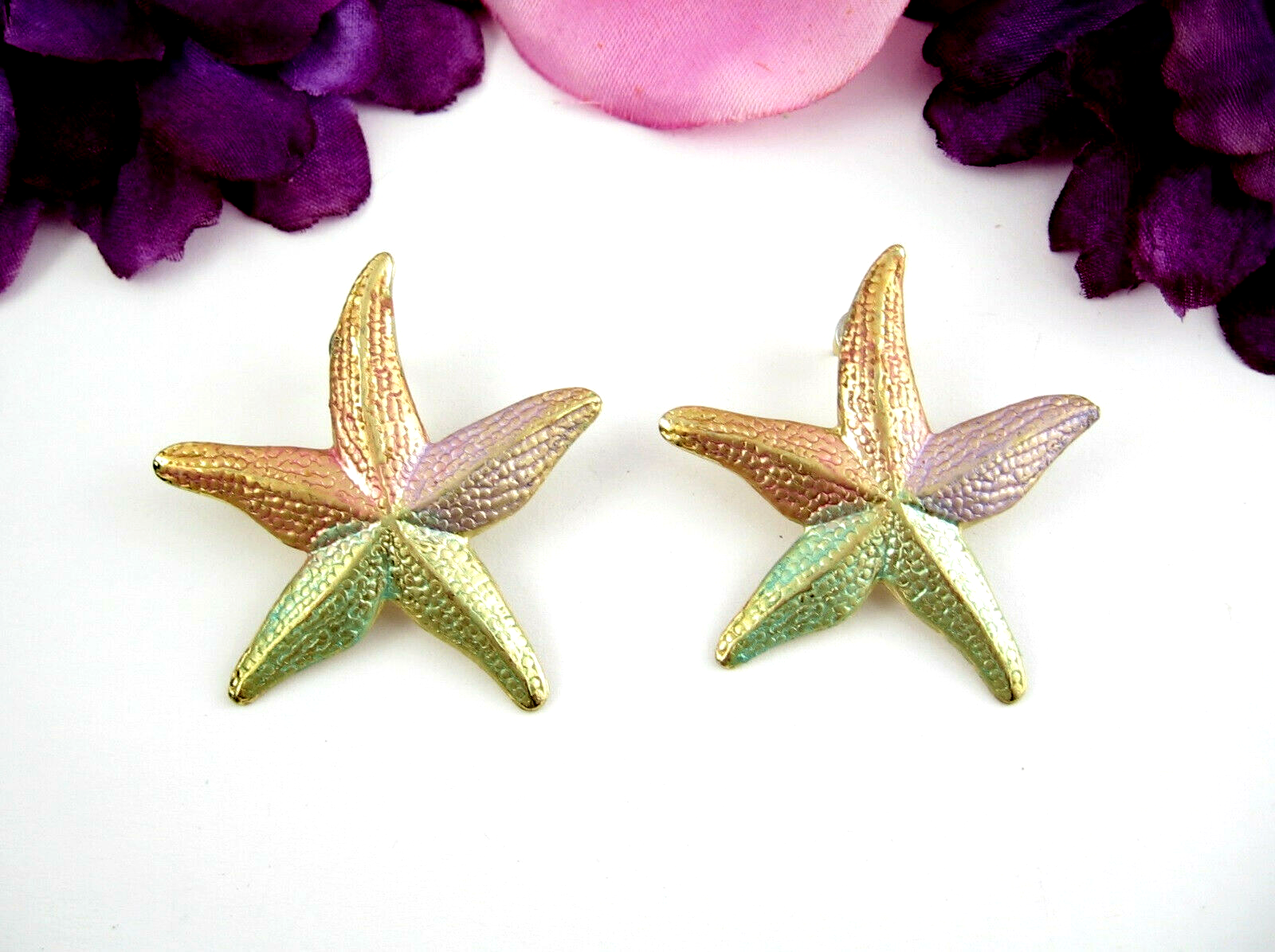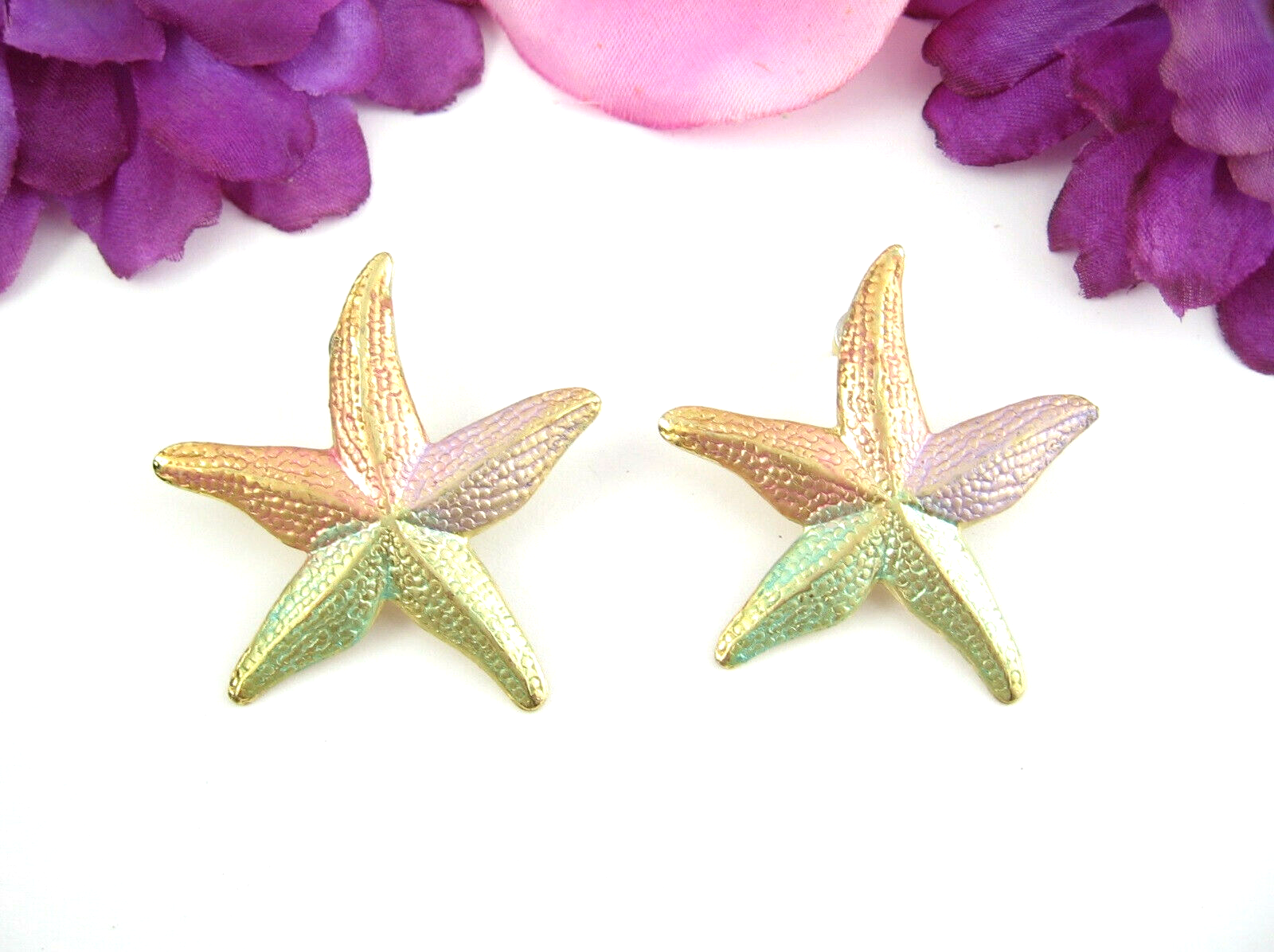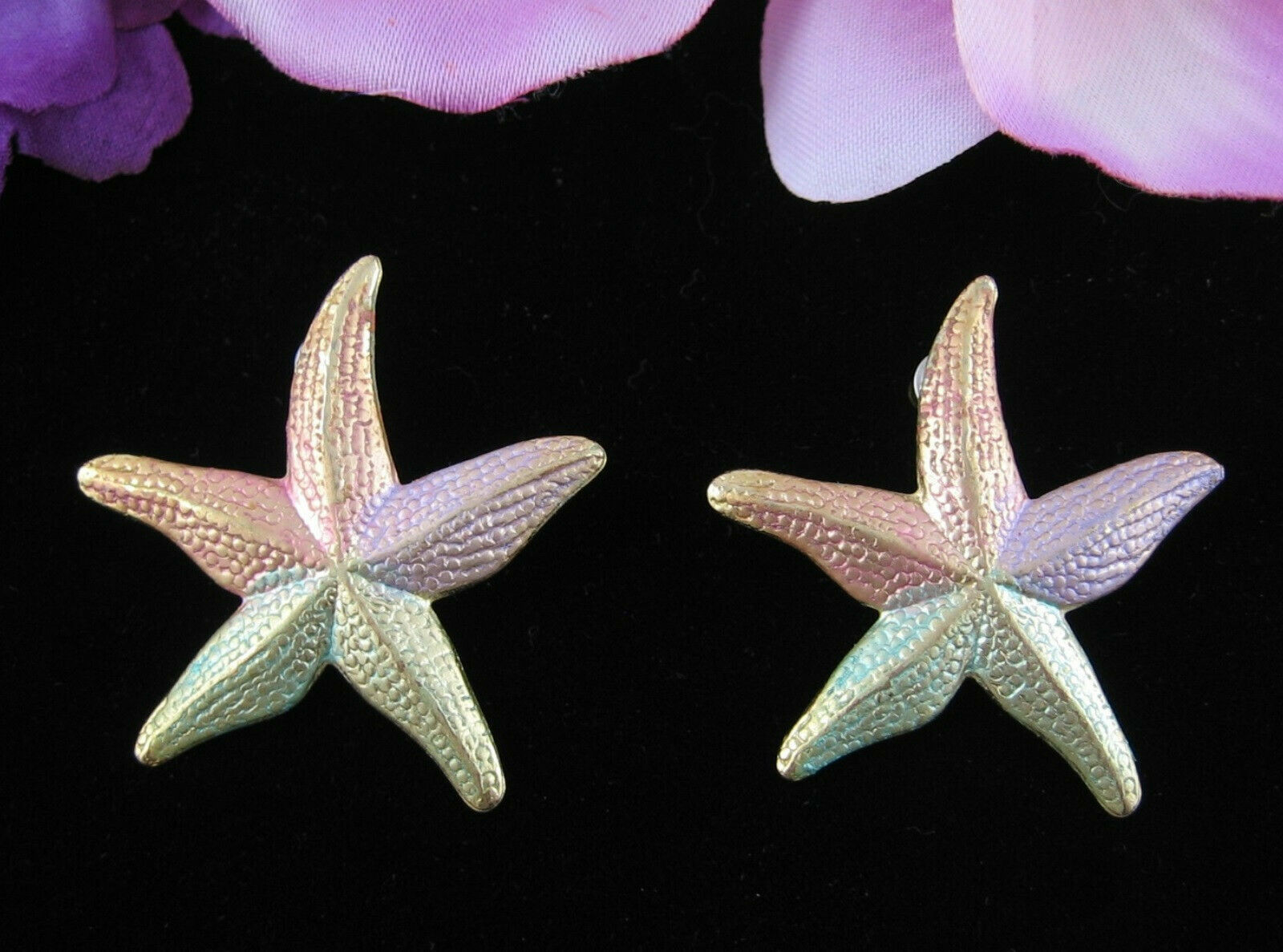 Pastel STARFISH Pierced EARRINGS Vintage Goldtone Posts Big Star Fish Colors