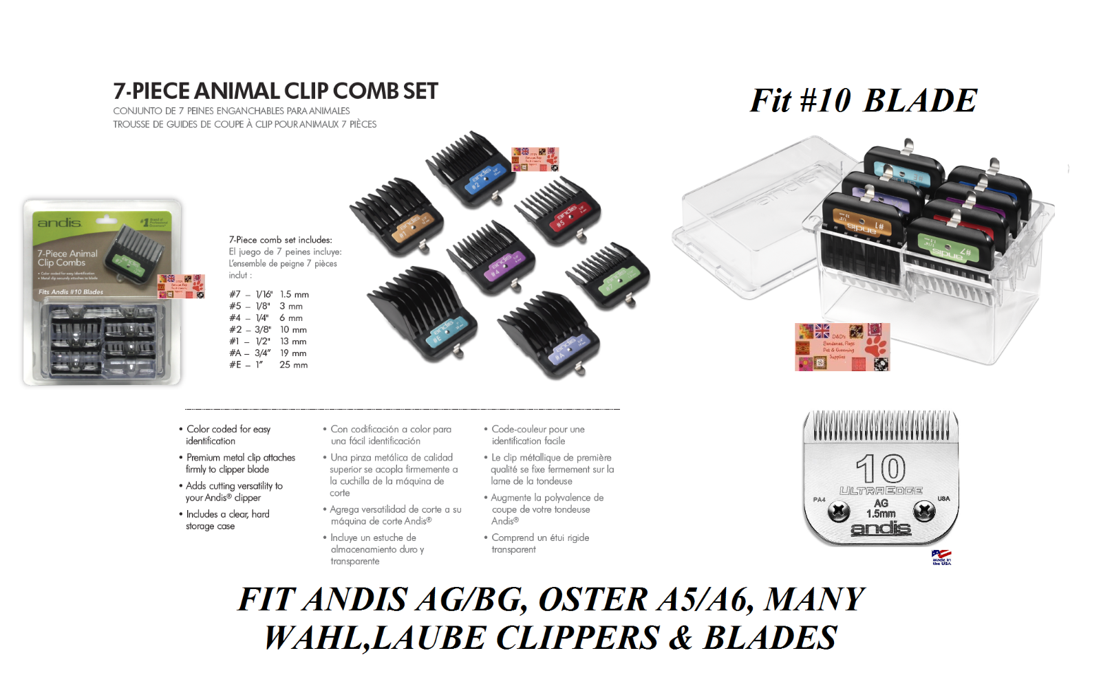 ANDIS Premium Metal Clip GUIDE COMB SET&UltraEdge 10 BLADE*Fits DBLC,SMC Clipper