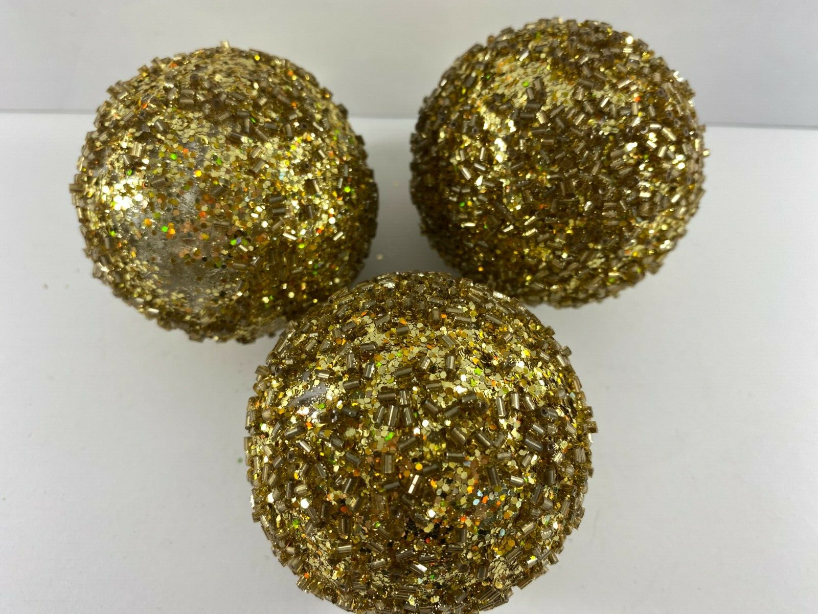 Vintage Lot 3 Gold Crusted Sequin Sparkle 2.5 in Ball Ornaments