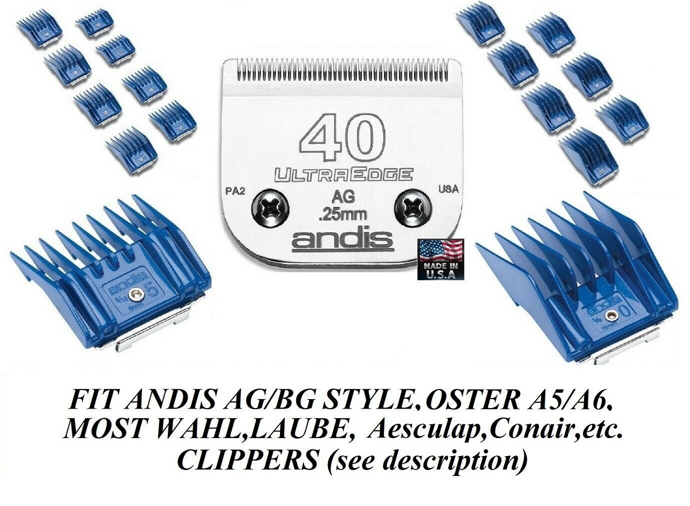 *NOTE: Blades Combs WILL NOT FIT ALL CLIPPERS-Compatible with most Hair Stylist, Barber and Pet Grooming corded and cordless Clippers from Oster, Andis, Conair, Laube, Geib, Moser, Aesculap and Wahl which take full size, professional, detachable style (also called A5,AG or BG) clippers.