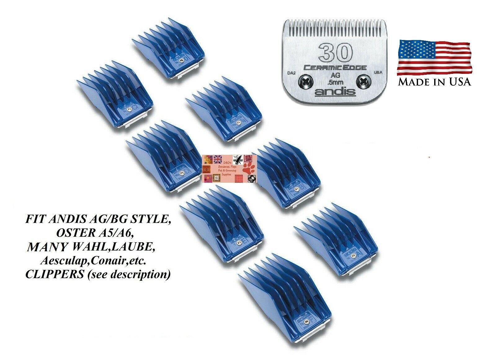 ANDIS 8pc GUIDE ATTACHMENT COMB&CeramicEdge 30 BLADE*Fit Many Oster,Wahl Clipper