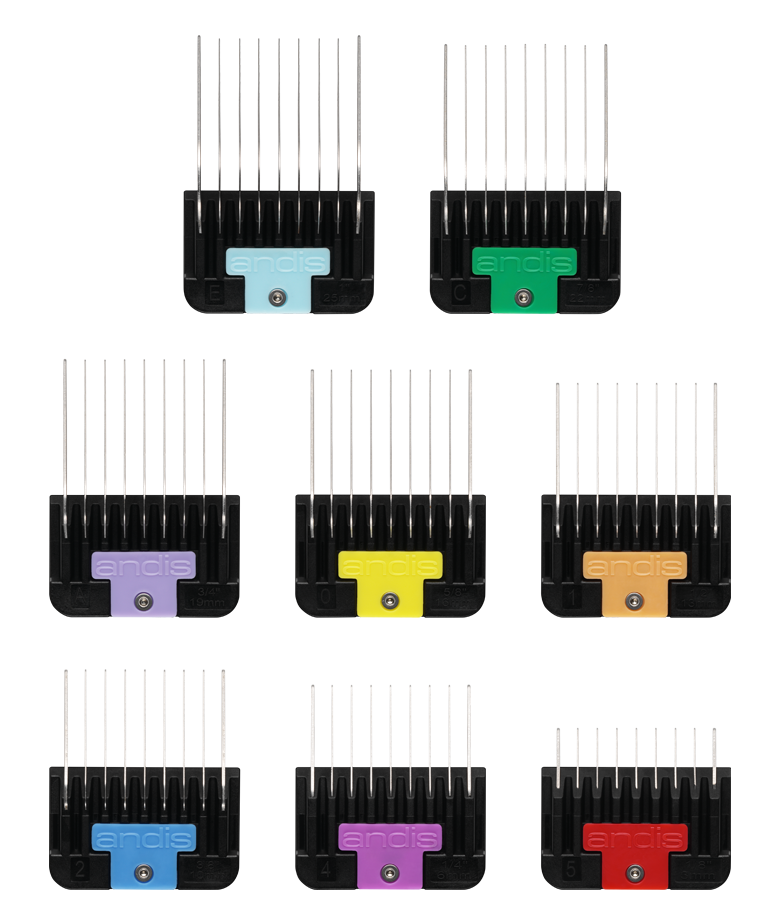 Professional-caliber comb attachments allow precise hair trimming for easier, more effective grooming. Each comb features a color-coded, clearly labeled end for convenient differentiation and simple selection. Grooming combs' rounded ends penetrate your pet's coat quickly, but without the risk of gouging skin. Allows you to cut hair to a uniform length just using one blade for all. Easy to use.