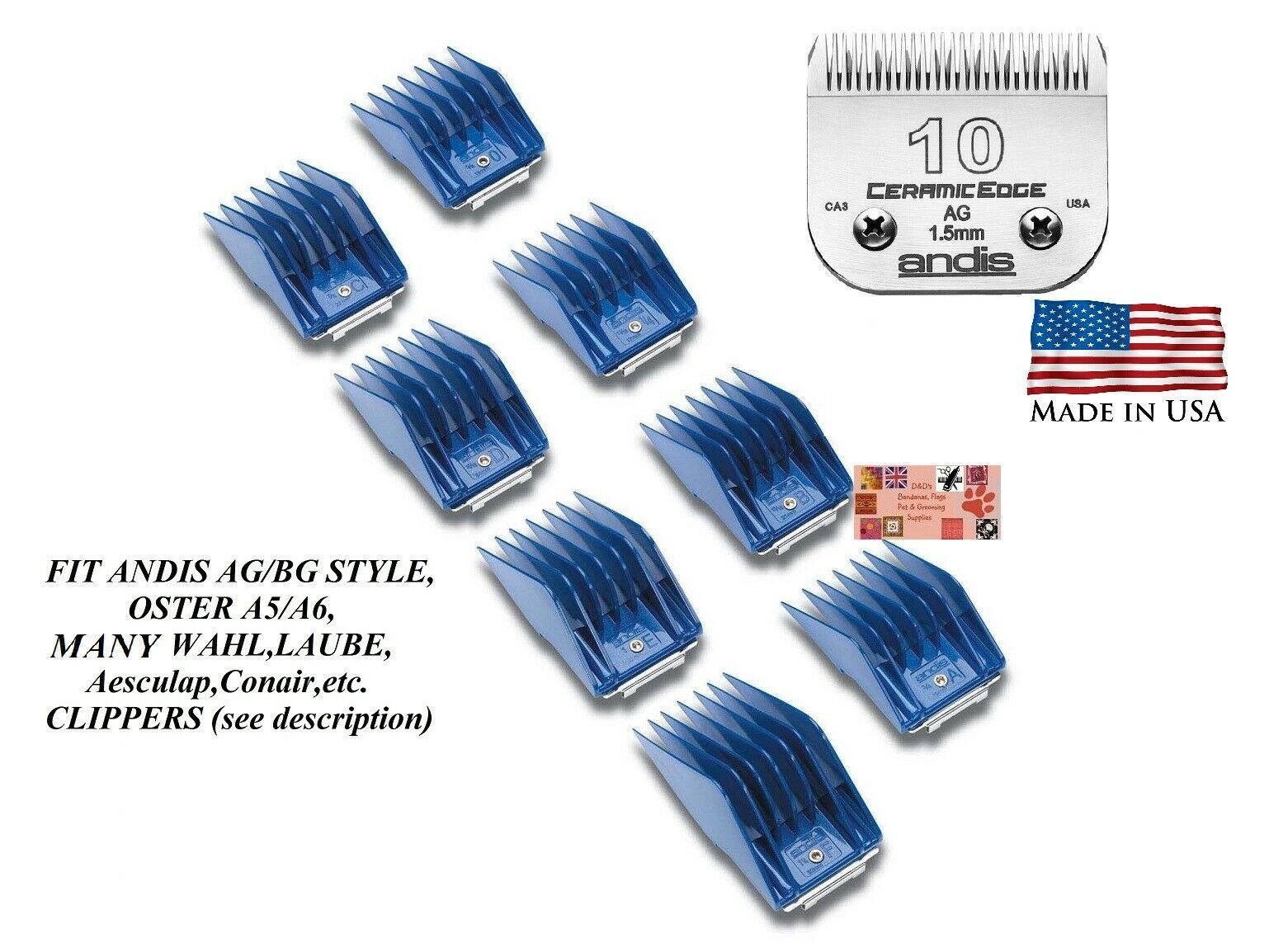 ANDIS 8 Guide ATTACHMENT COMB&CeramicEdge 10 BLADE SET*Fit Oster A5 A6 Clipper
