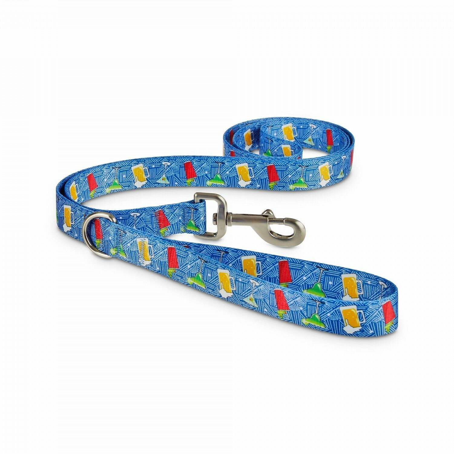 The Good2Go Happy Hour Dog Leash makes every walk a celebration thanks to it smooth motion swivel snap clip and a print that features a colorful round of drinks.