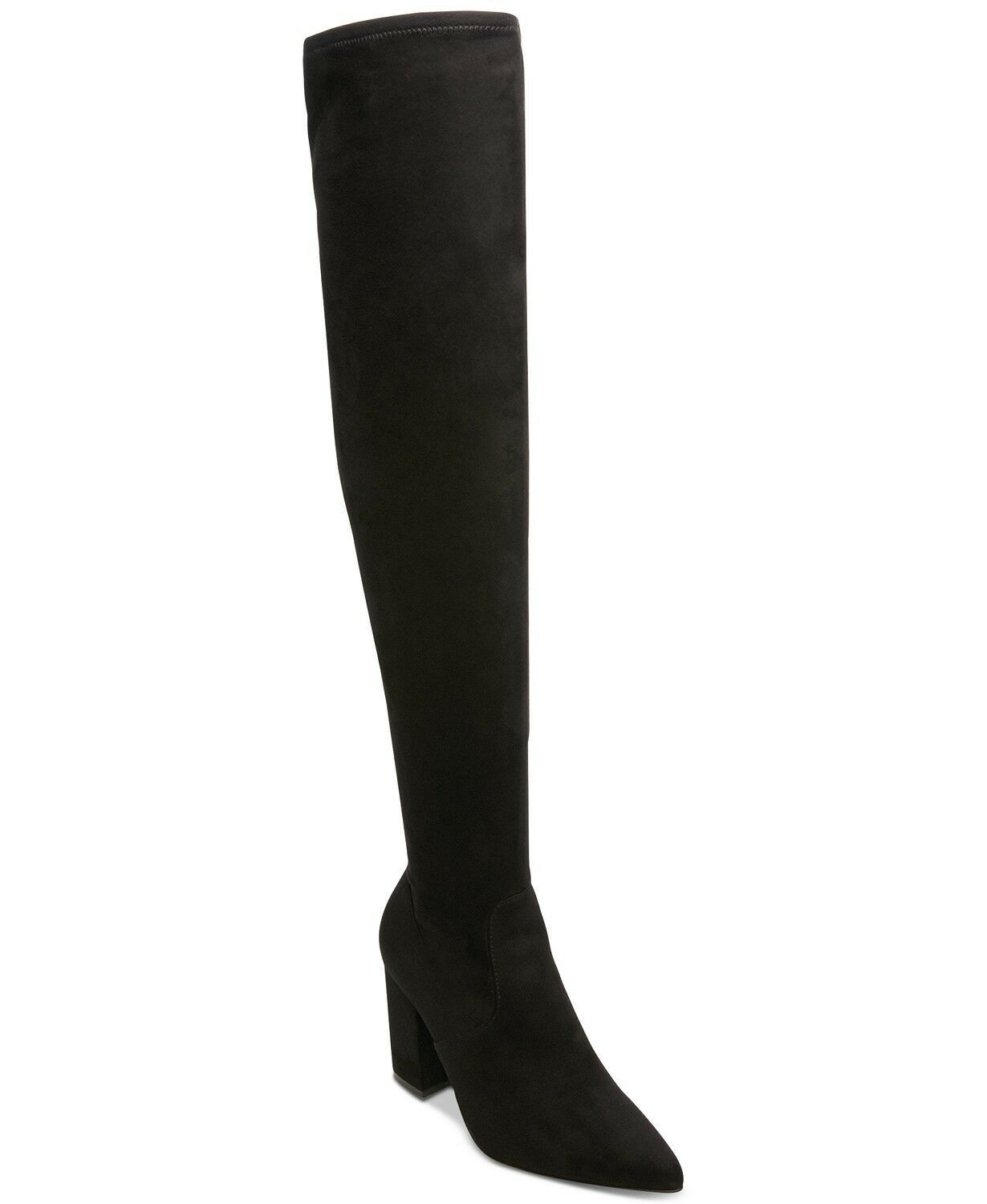 A pointed-toe and chunky block heel pair with sophisticated lines for a stunning silhouette in the Rational over-the-knee boots from Steve Madden.