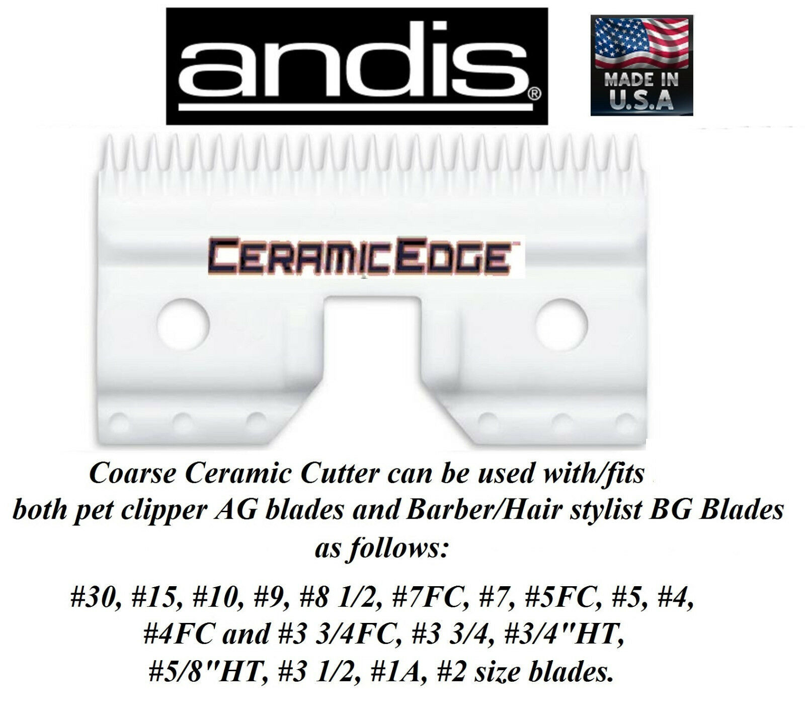 High-quality Andis Coarse Ceramic Cutters stay sharper longer and require less sharpening than standard steel blades. The low heat transfer and friction index of ceramic keeps blades running 50% cooler than steel. You?ll use less coolant and clip faster with less downtime for increased productivity.