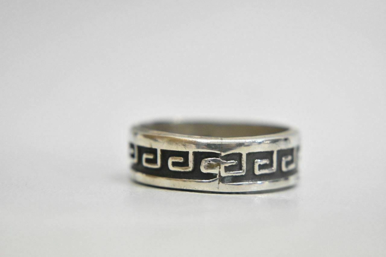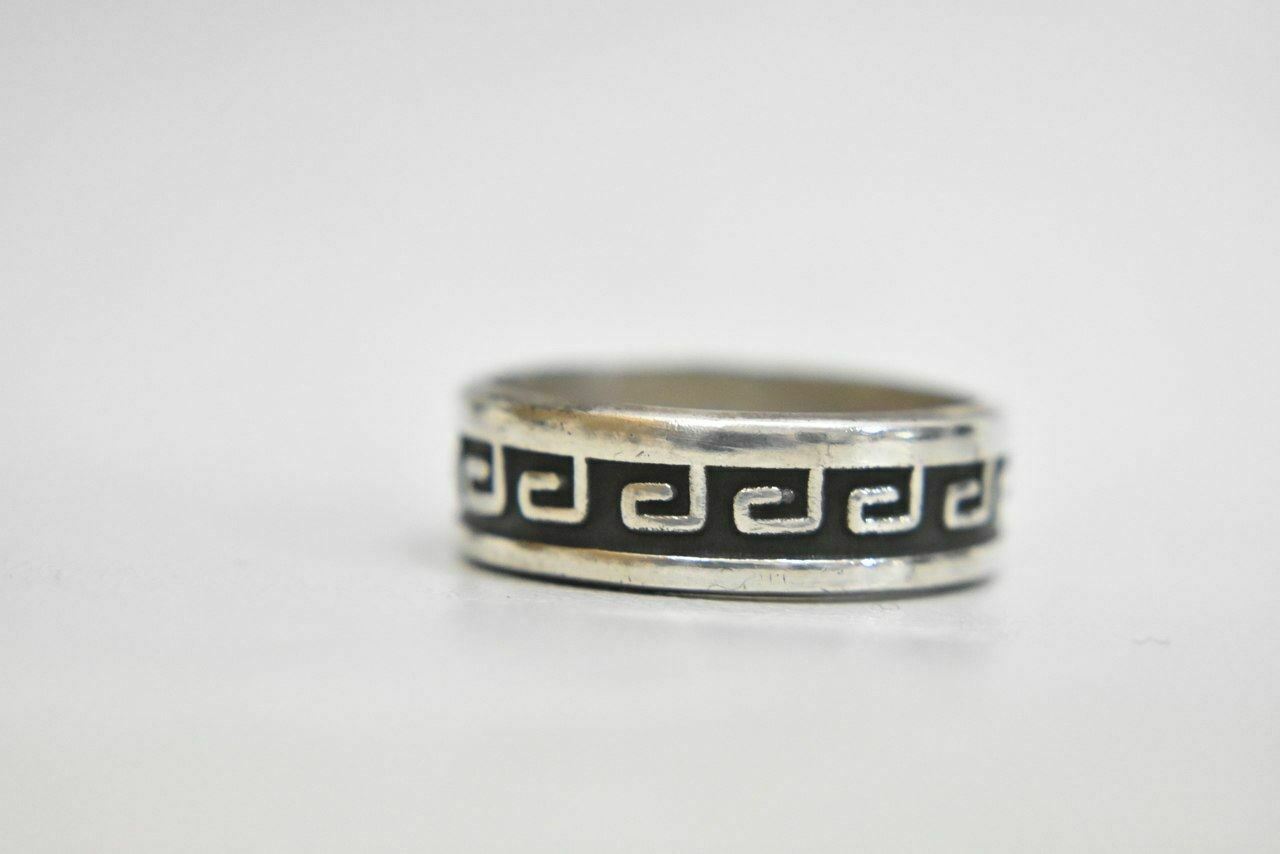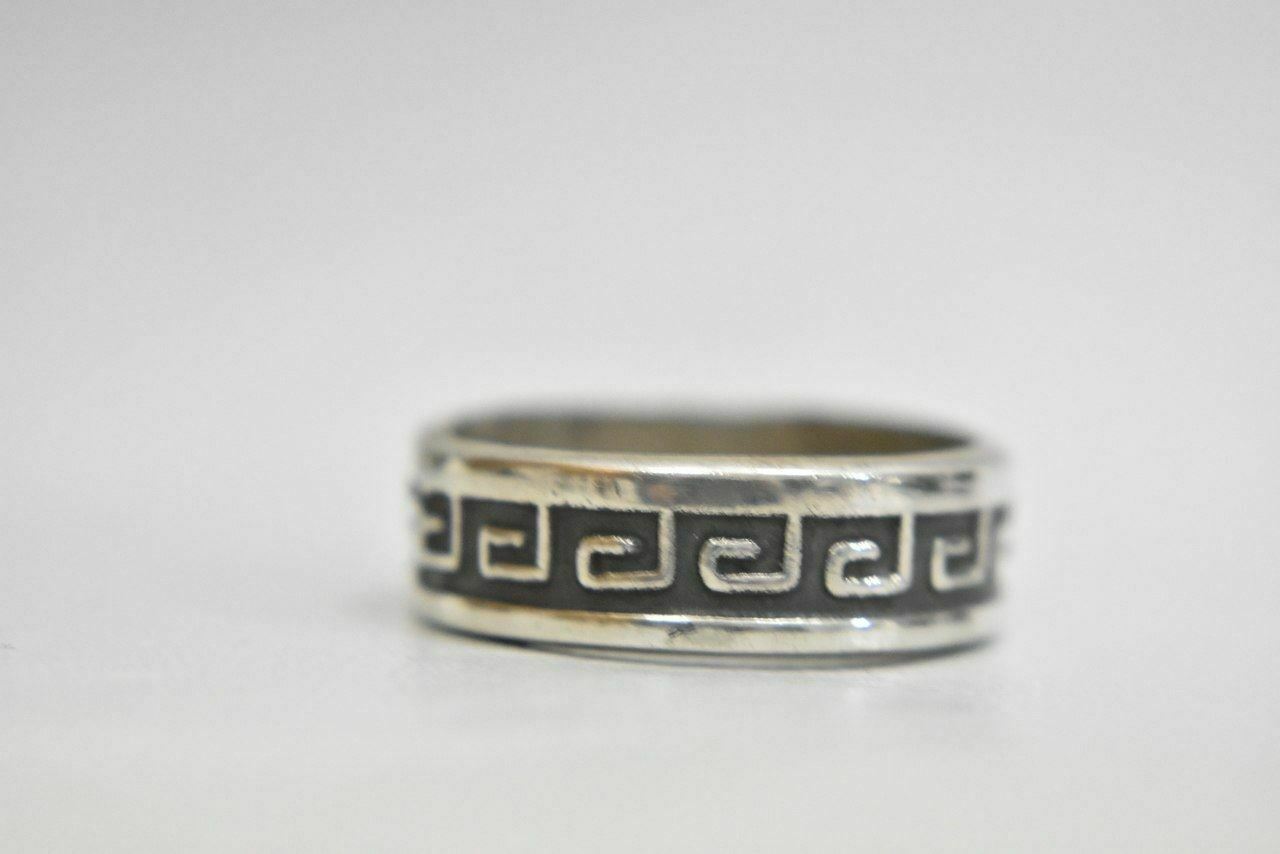 Greek Key ring rope band sterling silver thumb wedding Mexico men size 12.25