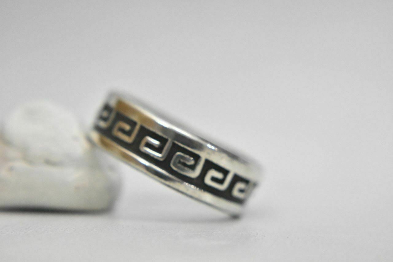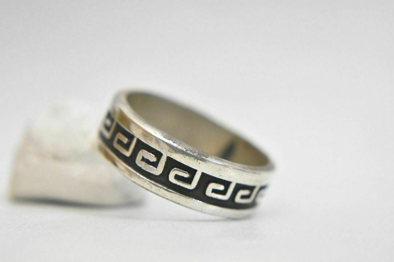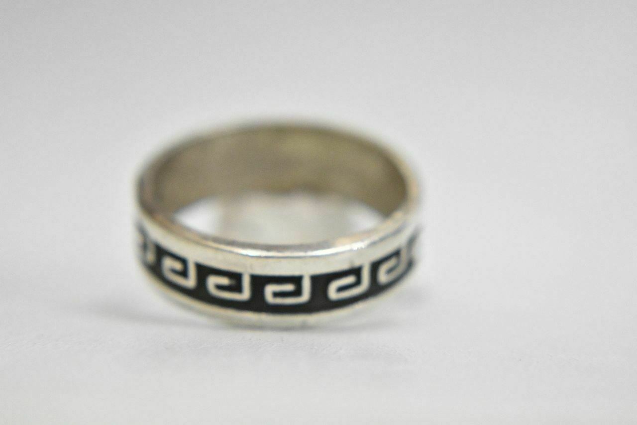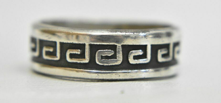 Greek Key ring rope band sterling silver thumb wedding Mexico men size 12.25