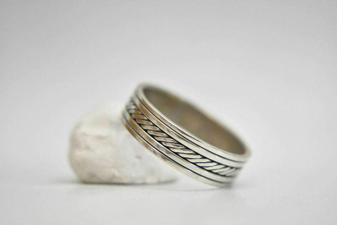 Chain ring rope band sterling silver thumb wedding ring boho men