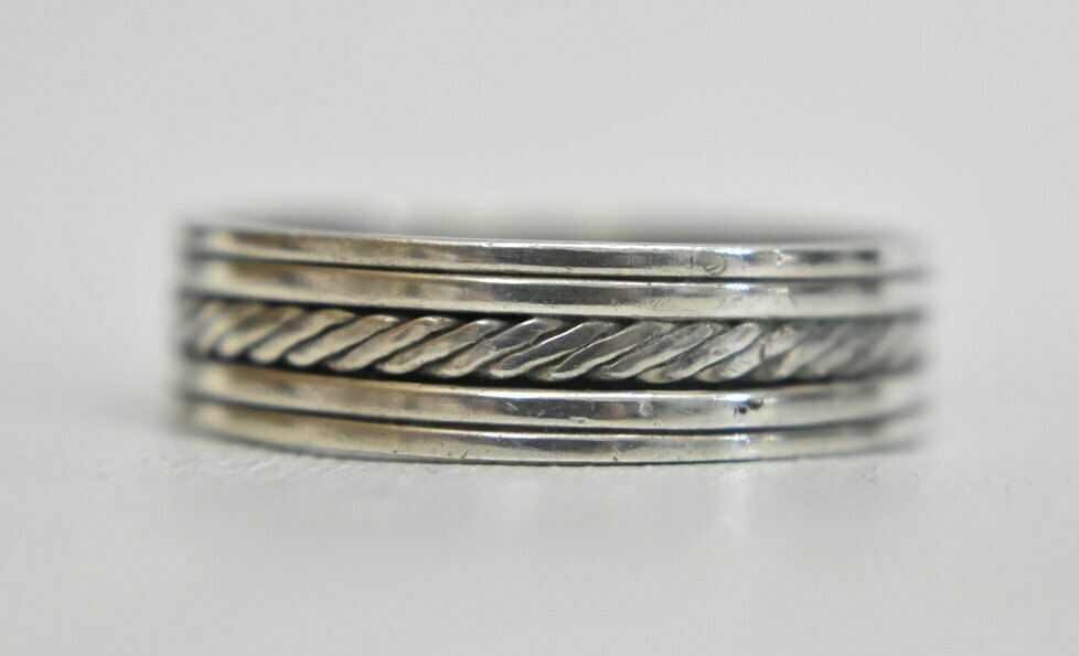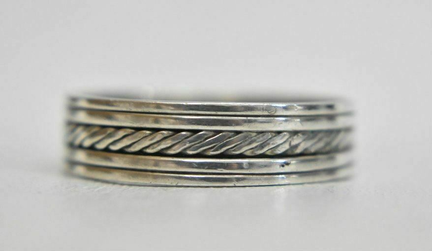 Chain ring rope band sterling silver thumb wedding boho men Size 12.75