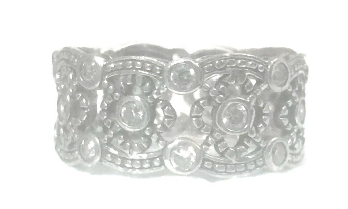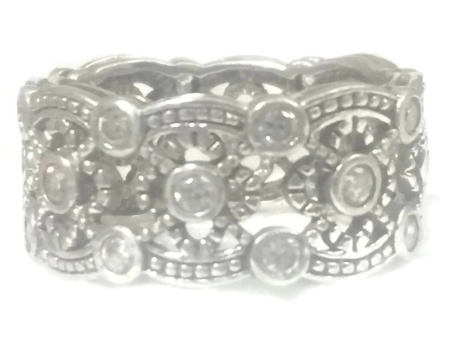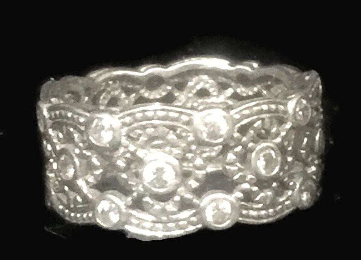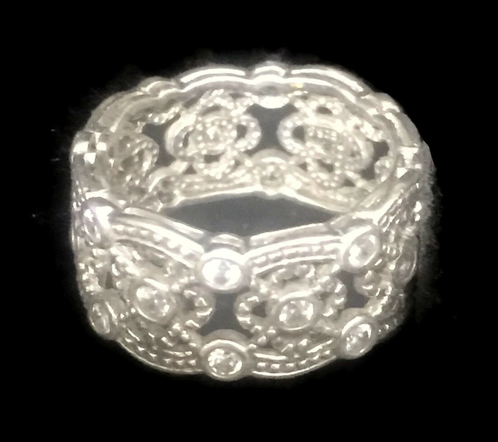 Vintage CZ Ring Sterling Silver Boho Thumb Wide Band Size 6.50