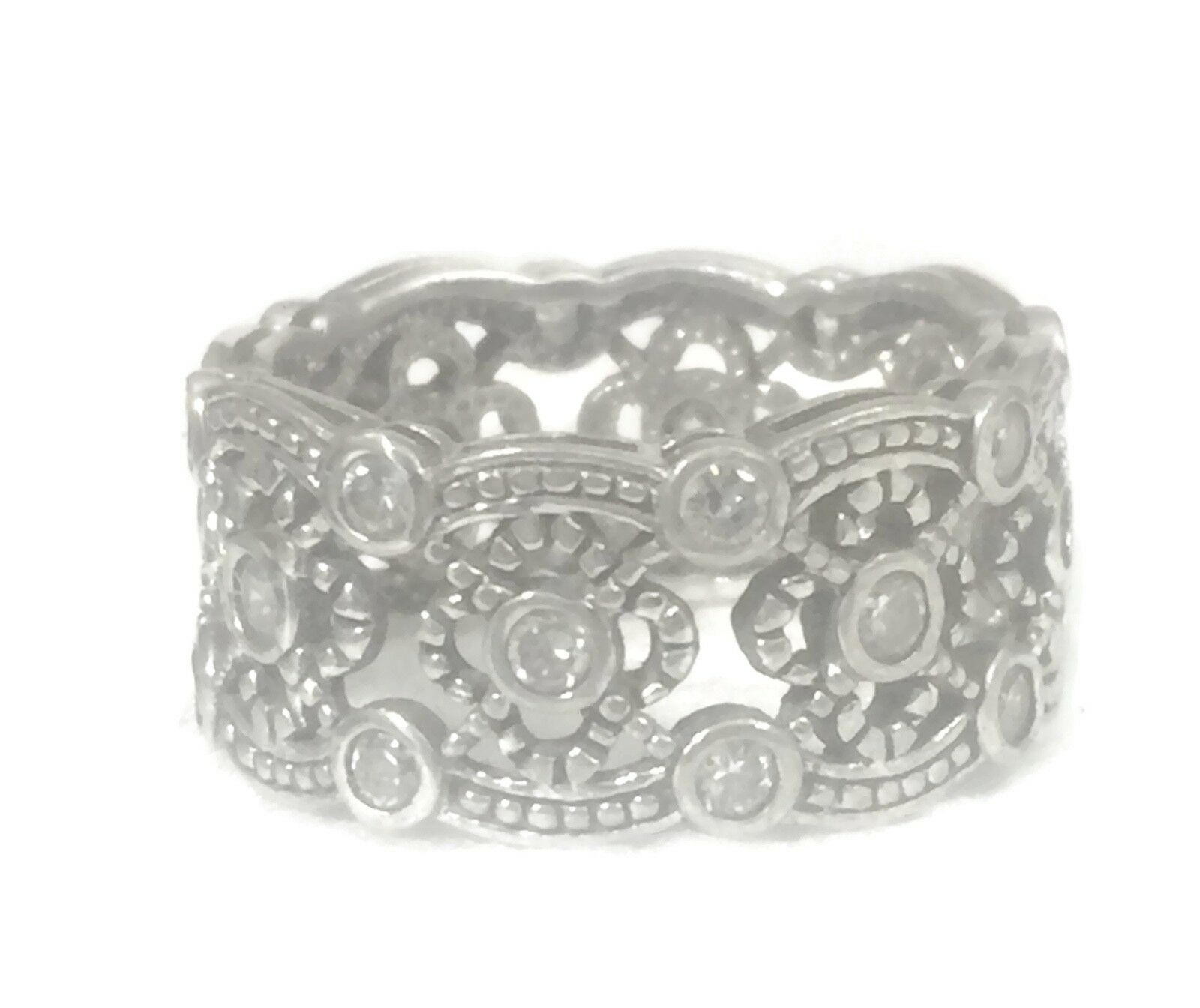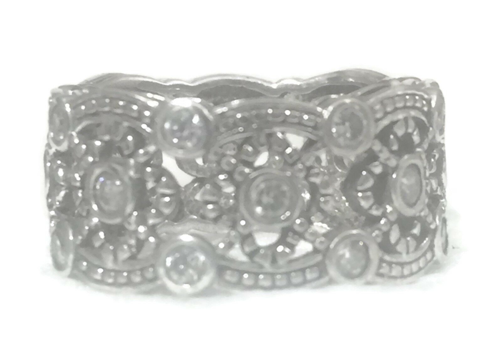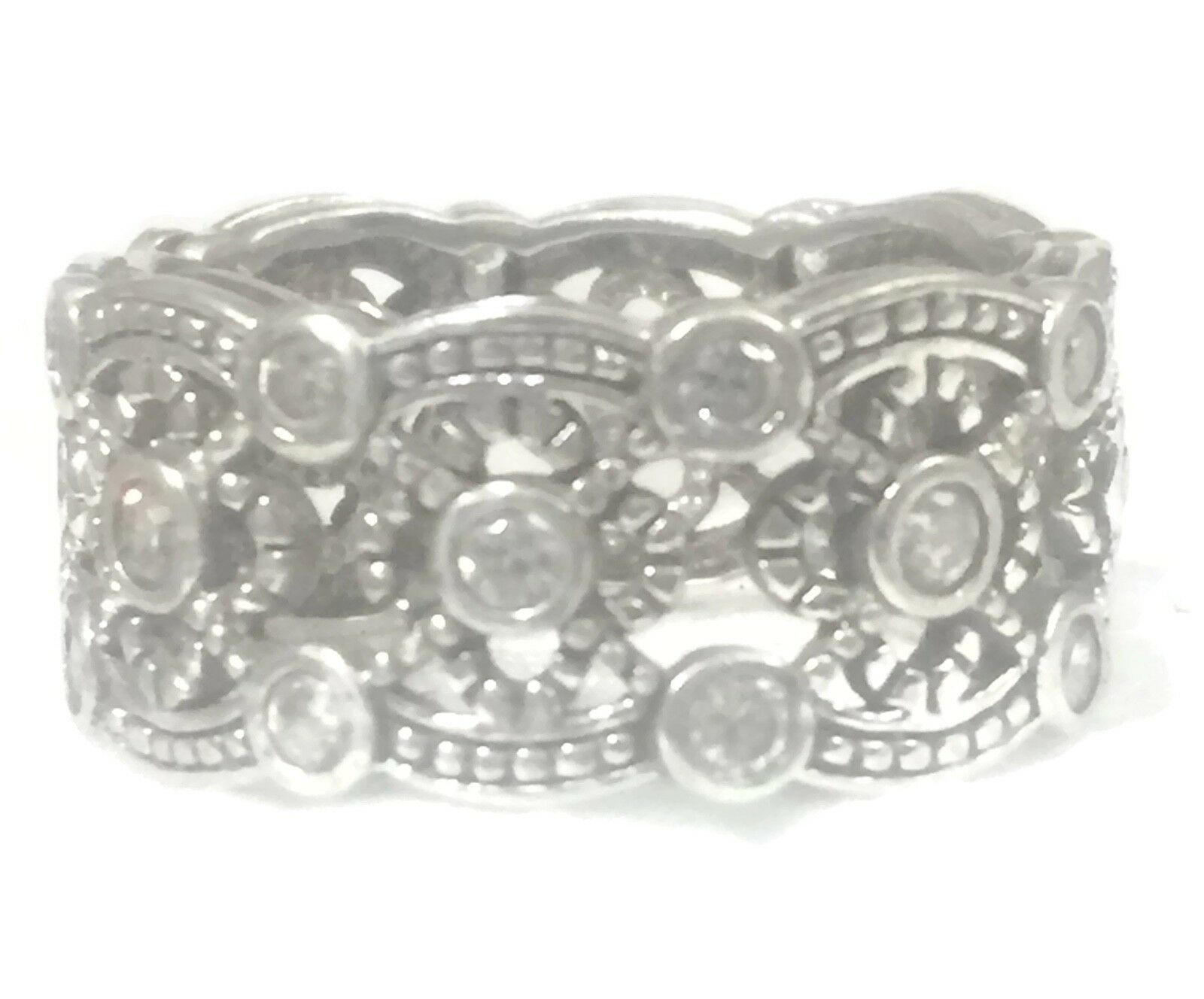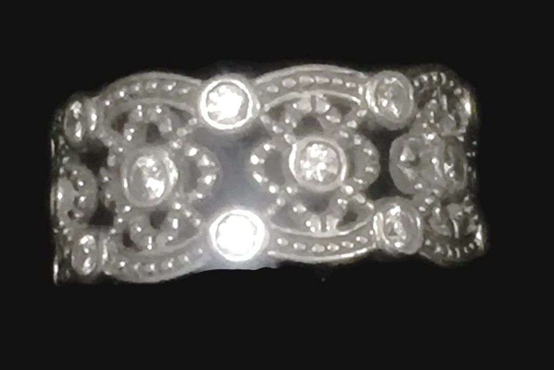 Vintage CZ Ring Sterling Silver Boho Thumb Wide Band Size 6.50